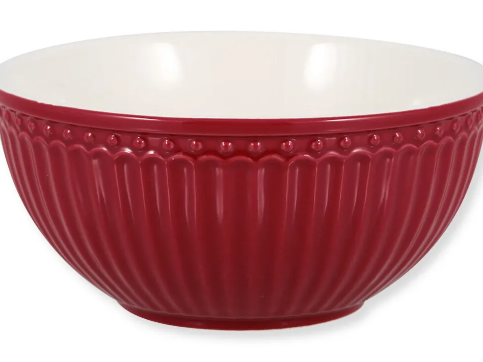 Erfreue dich an den knalligen und aussagekräftigen Farben! Diese stylische Müsli Schale aus der Serie Alice von GreenGate besticht in wohlausgewählten Farben und einem besonderen Design. Nutze die Schale für Suppe, Müsli, Salat oder sonstige Leckereien und werte dein Geschirrset daheim ordentlich auf.