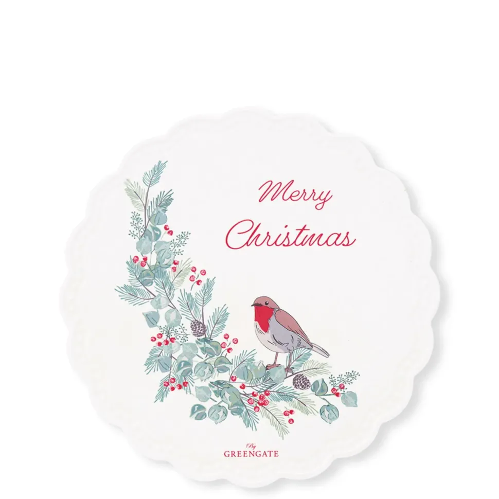 Porzellan Untersetzer rund Leonora Merry Christmas von Greengate im SKANDEKO Onlineshop kaufen.