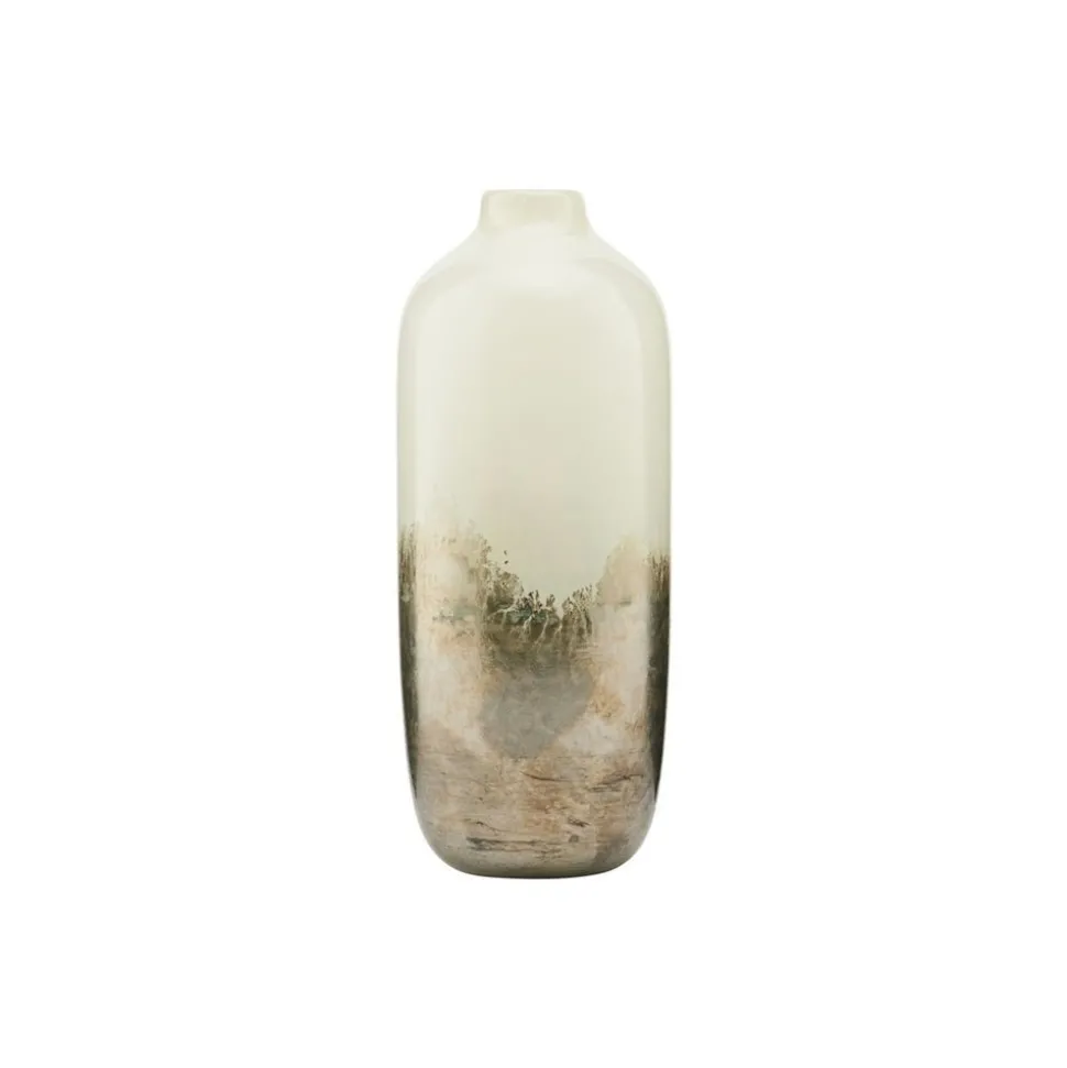 Schaffe eine gemütliche Atmosphäre in deinem Zuhause im Innen- oder Außenbereich mit dieser Vase „Earth“ von House Doctor. Der schöne beige Farbton geht in einem sanften Übergang über in einen stilvoll metallischen Look. Die Öffnung der Vase ist relativ klein, wodurch einzelne Blumen oder kleine Äste besonders stilvoll in Szene gesetzt werden können. Im Schlafzimmer, Wohnzimmer oder sogar draußen auf dem Balkon ist eine gemütliche Stimmung damit sichert.