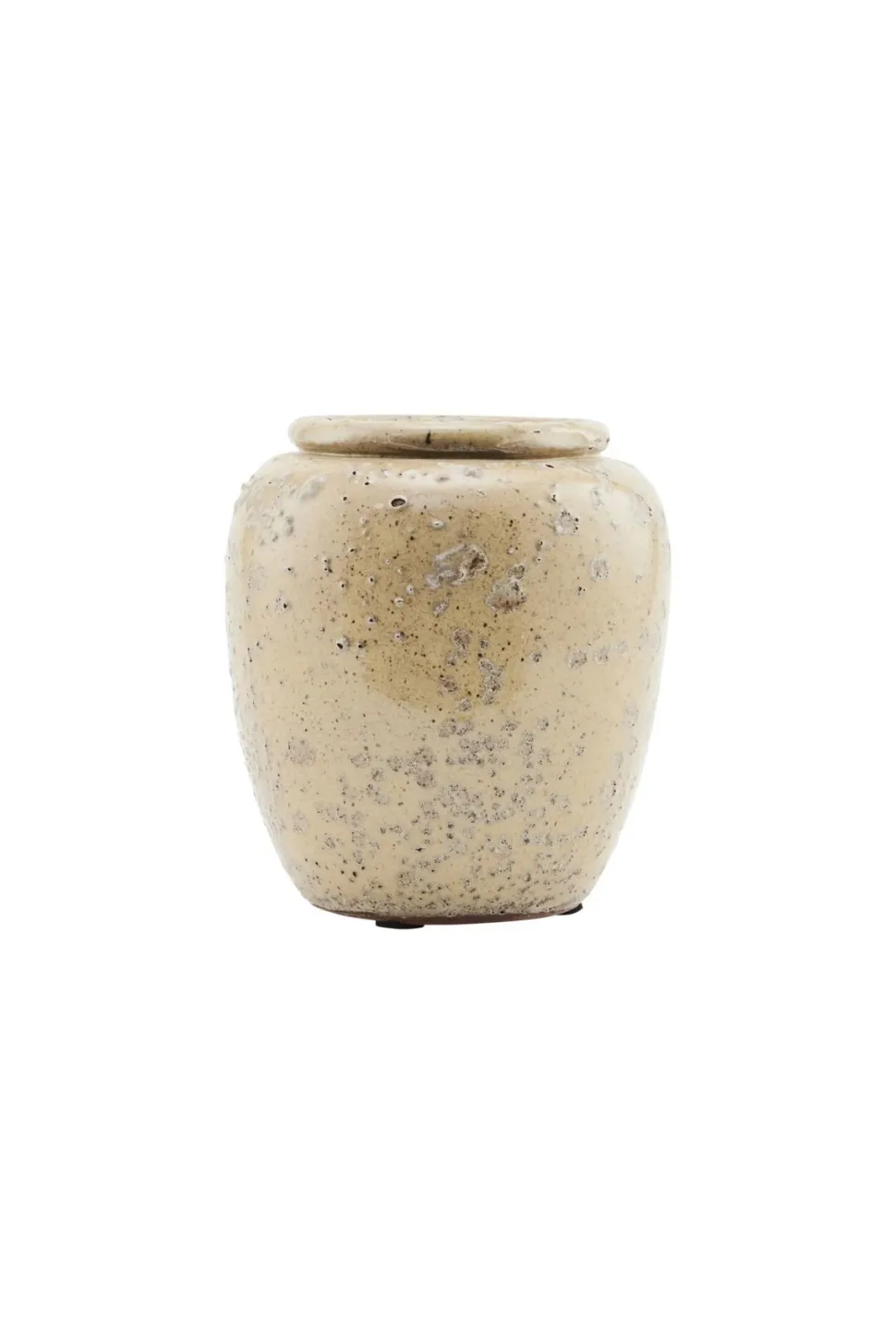 Werte einen minimalistischen oder rustikalen Einrichtungsstil optimal auf, indem du diese schöne Vase von House Doctor als Dekorationselement verwendest. Die Vase erscheint in einem unvollkommenen Look, welcher beabsichtigt das Aussehen der Vase bestimmt. So kommt es vor, dass keine Vase einer anderen gleicht und sie eine ganz besondere Ausstrahlung versprüht. Goldene Akzente lassen sich gut als Kontrastquelle für die Vase verwenden.