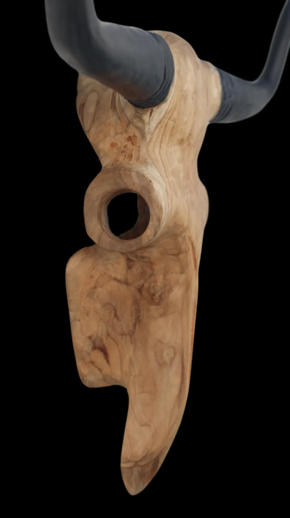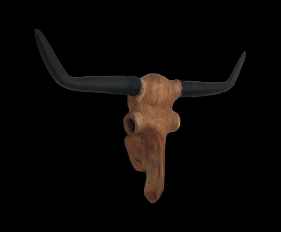 Diese Wanddekoration in Form eines Büffelkopfs mit langen geschwungenen Hörnern besticht durch ihre Ausführung in Vintage-Optik und bringt individuellen Stil in deine Inneneinrichtung.