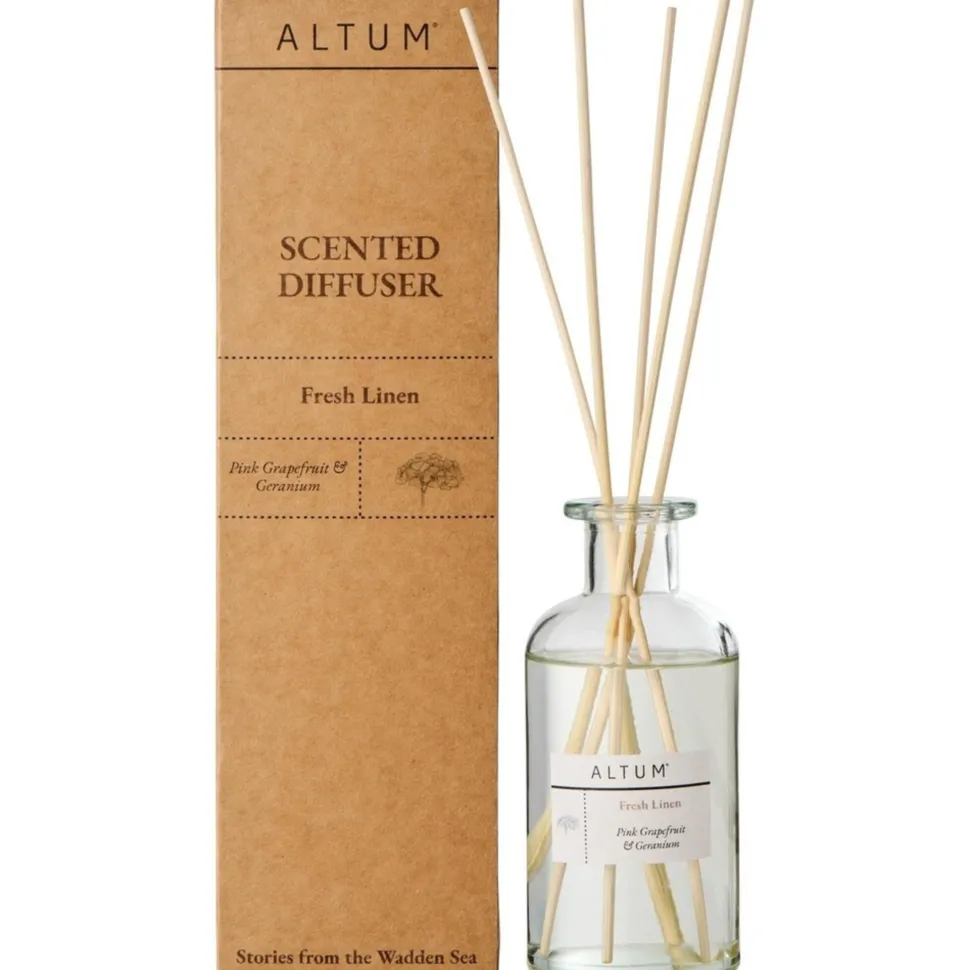Fresh Linen bringt den Duft von sonnengetrockneter Wäsche und weitem Himmel in Ihr Zuhause, abgerundet mit frischer Pink Grapefruit und der sanften Eleganz von Geranie.