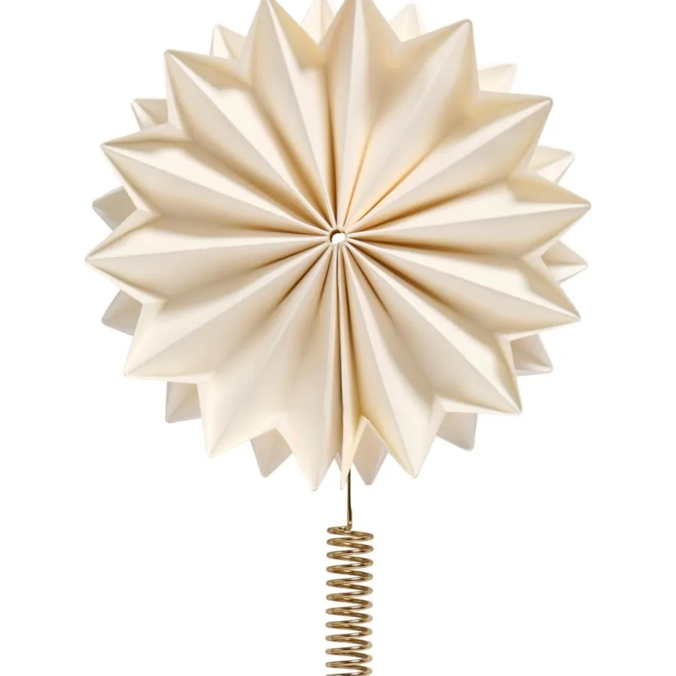 Christbaumstern aus weißem Papier mit messingfarbener Halterung. Ein einfacher und stilvoller Christbaumstern.