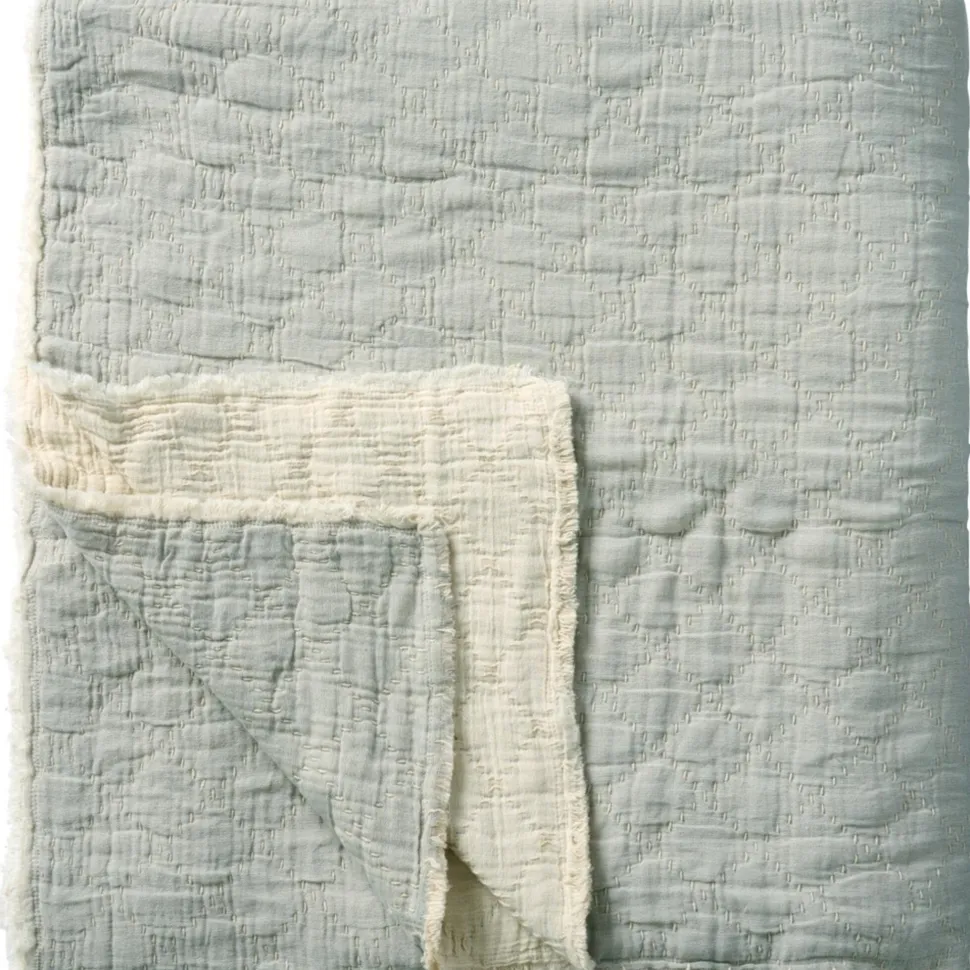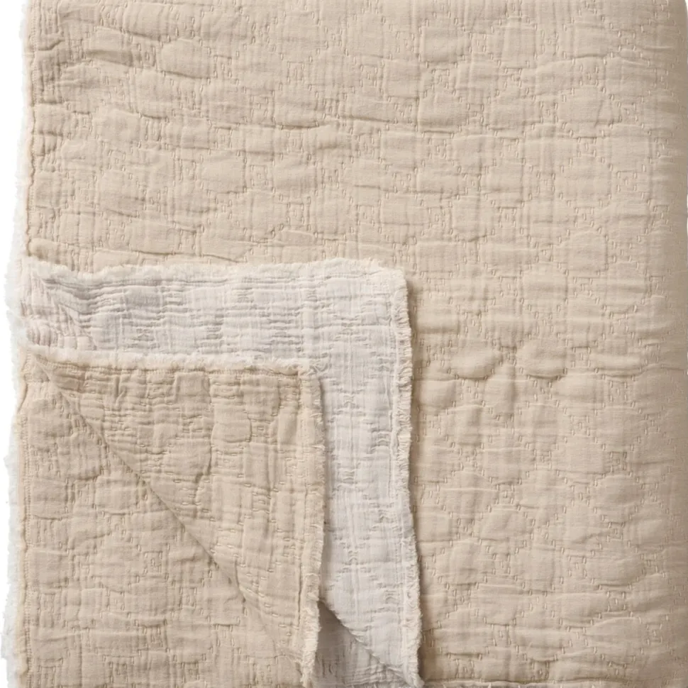 Baumwolle. Weiche Bettdecke aus doppelt gewebter Baumwolle mit leichter Steppstruktur und dezentem Karomuster. Die sanfte Farben verleihen ein ruhiges, zeitloses Ambiente.