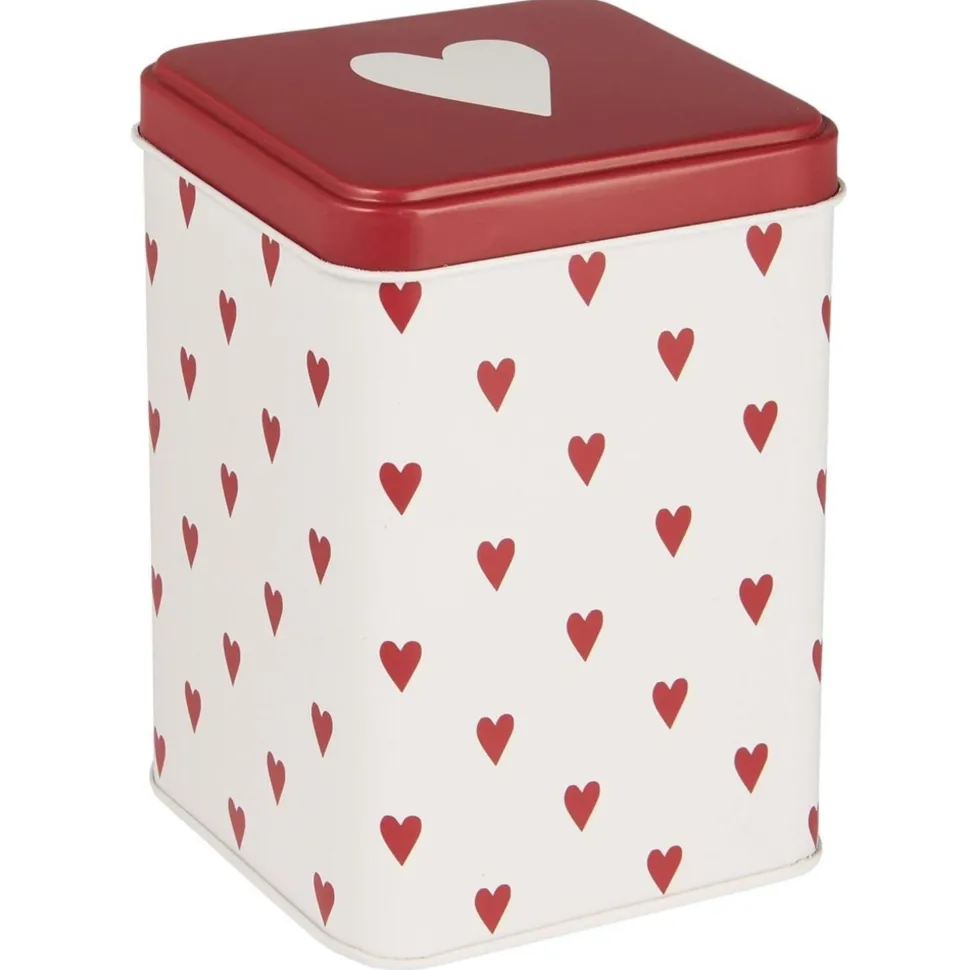 Metall. Viereckige Dose mit Herzen. Diese süße kleine Dose ist perfekt als Teedose oder für leckere Bonbons und Kleinigkeiten. Hergestellt aus Metall und lebensmittelsicher.