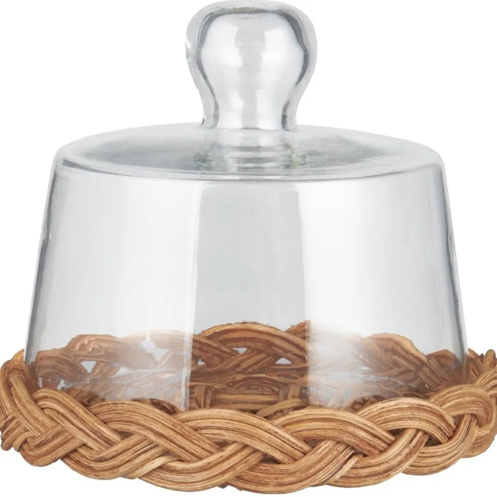 IB Laursen Glasglocke mit Rattanboden mundgeblasen