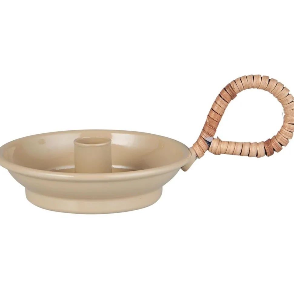 Kerzenhalter für dünne 1,3 cm Kerze mit Henkel aus Bambusgeflecht von IB Laursen aus Dänemark.
