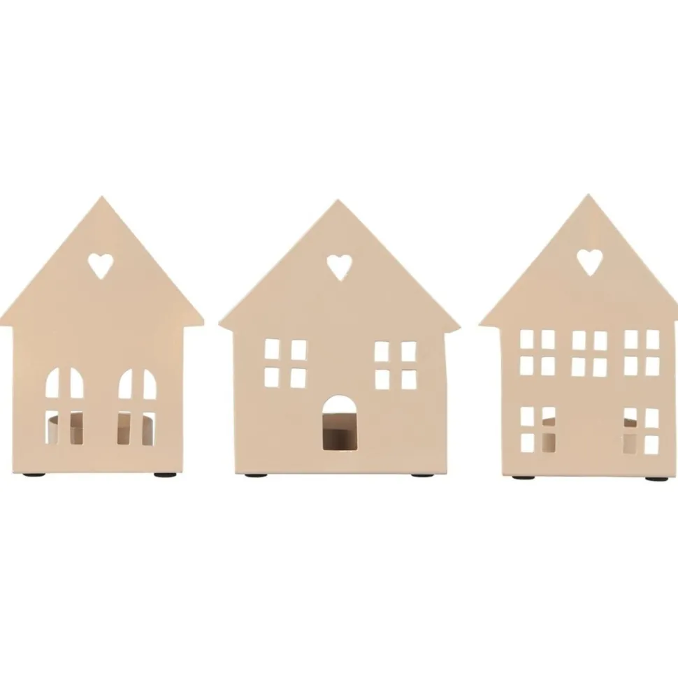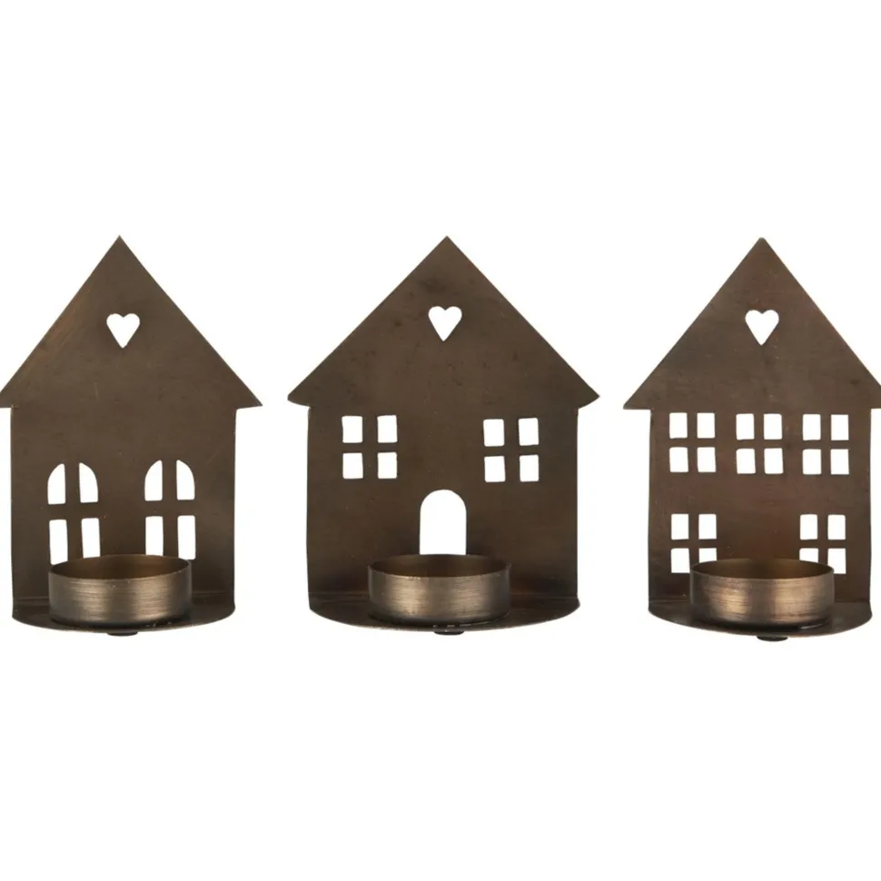 Kerzenhalter für Teelicht, stehende Hausfassade im 3er Set von IB Laursen aus Dänemark.