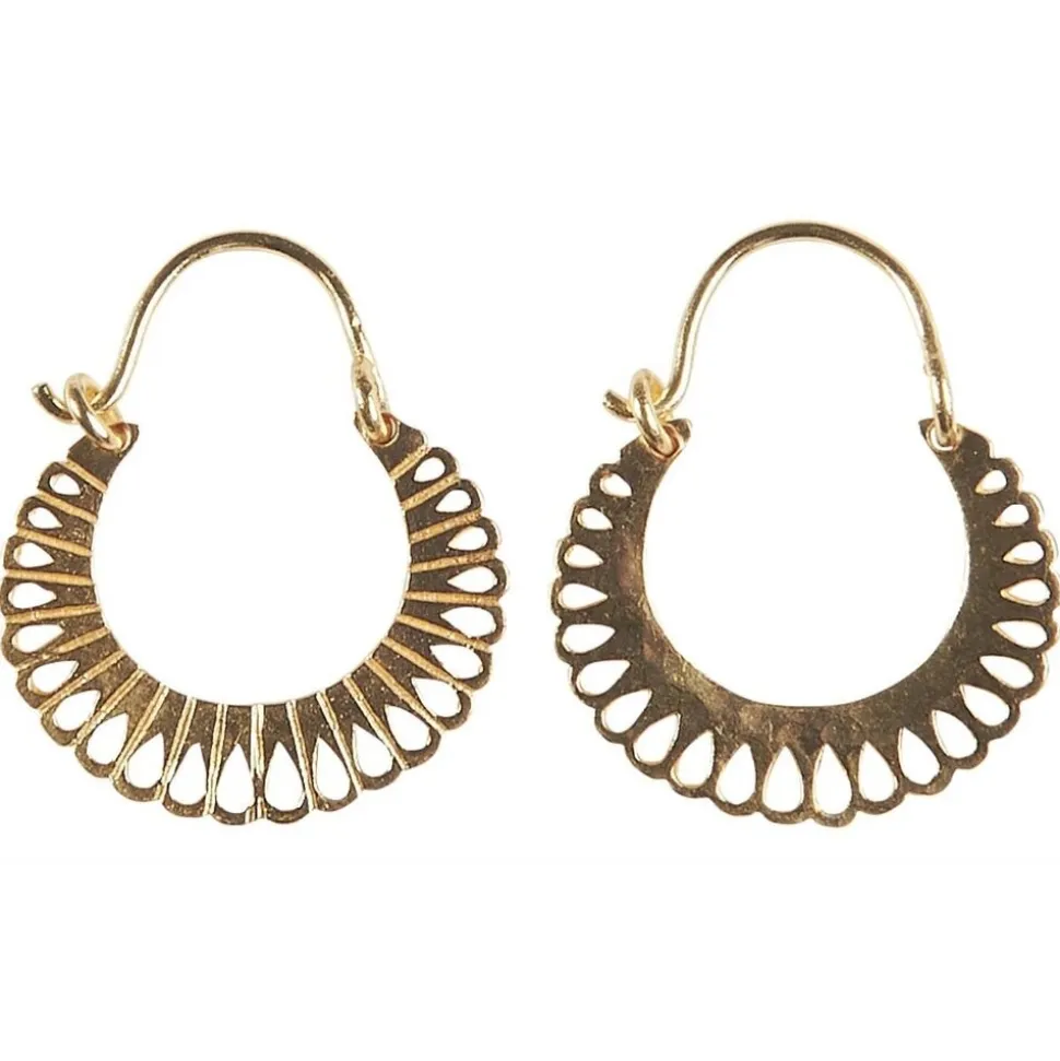 Iris macht deinen Look perfekt. Ausgestattet mit Iris, wirst du nie wieder unpassende Ohrringe haben. Hergestellt aus Messing und mit 18 karat Gold beschichtet.