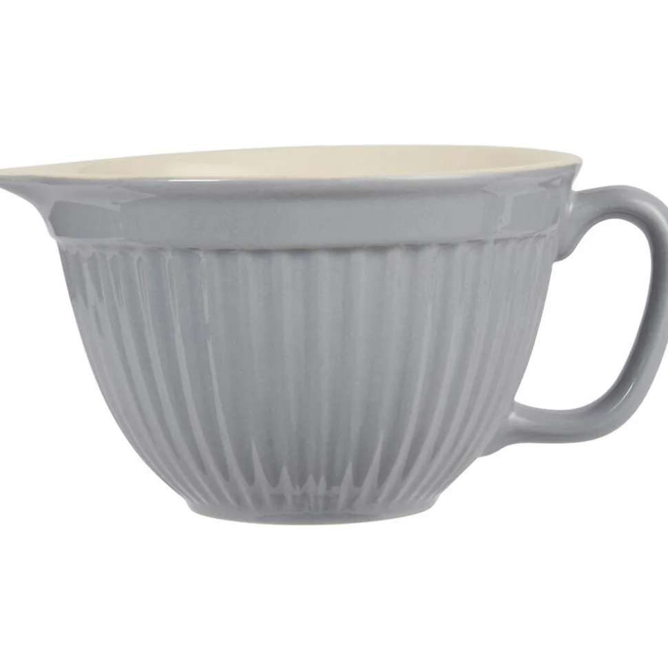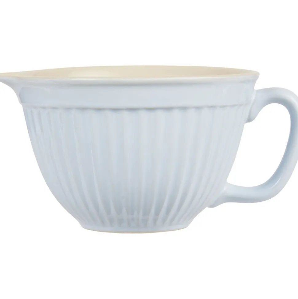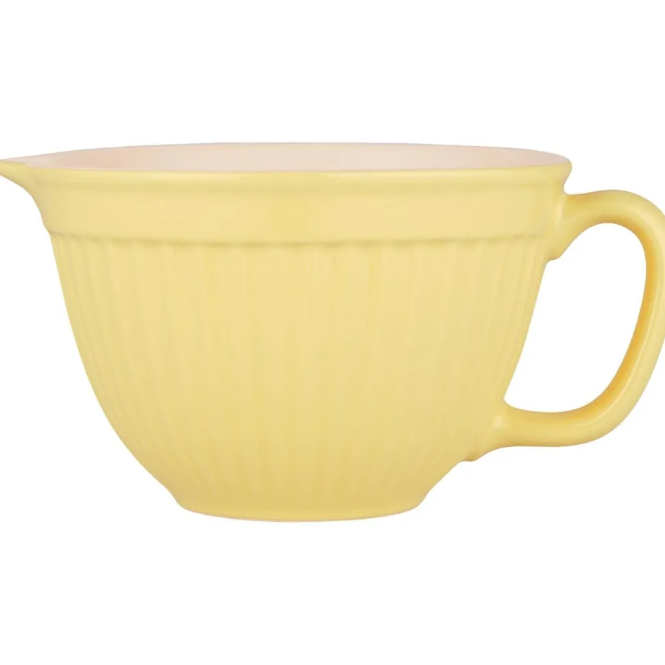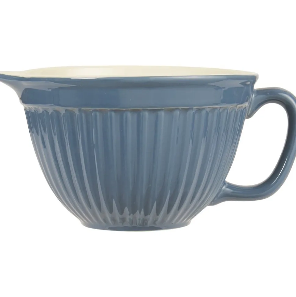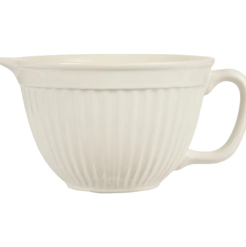 Die mit Henkel und Ausguss versehene Rührschüssel aus Steingut ist ein praktischer Helfer beim Kochen und Backen.