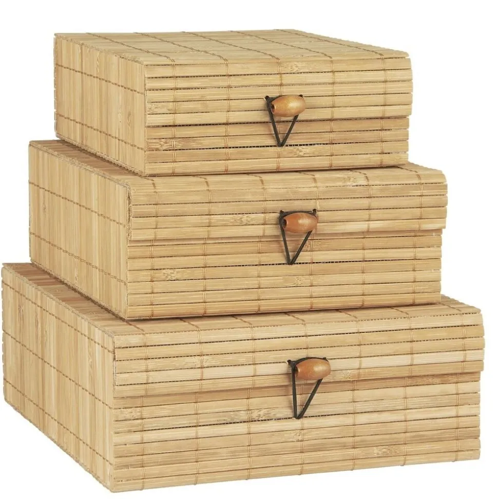 Praktische Schachteln in denen du deine Habseligkeiten aufbewahren kannst. Natürlicher Bambus sorgt für eine naturnahe Optik, die perfekt in deinen Raum passt.