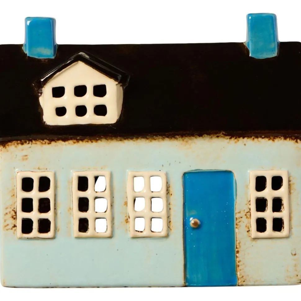 Teelicht Häuschen aus Keramik Nyhavn blaue Tür von IB Laursen aus Dänemark.