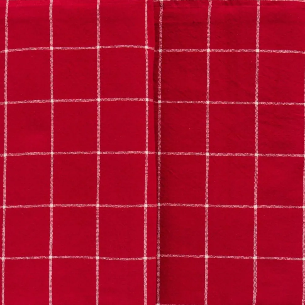 Tischdecke Silja länglich rot mit großen naturfarbigen Karos von IB Laursen aus Dänemark.