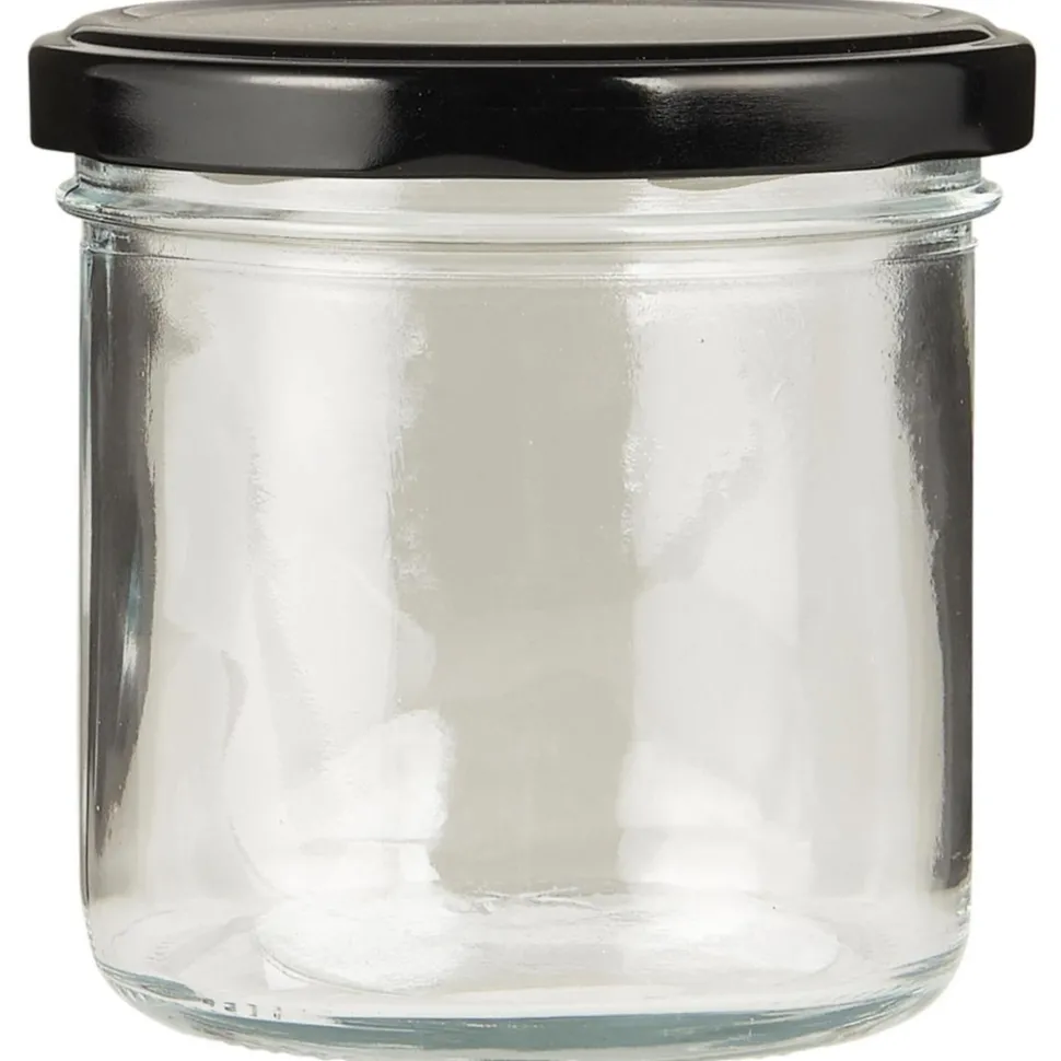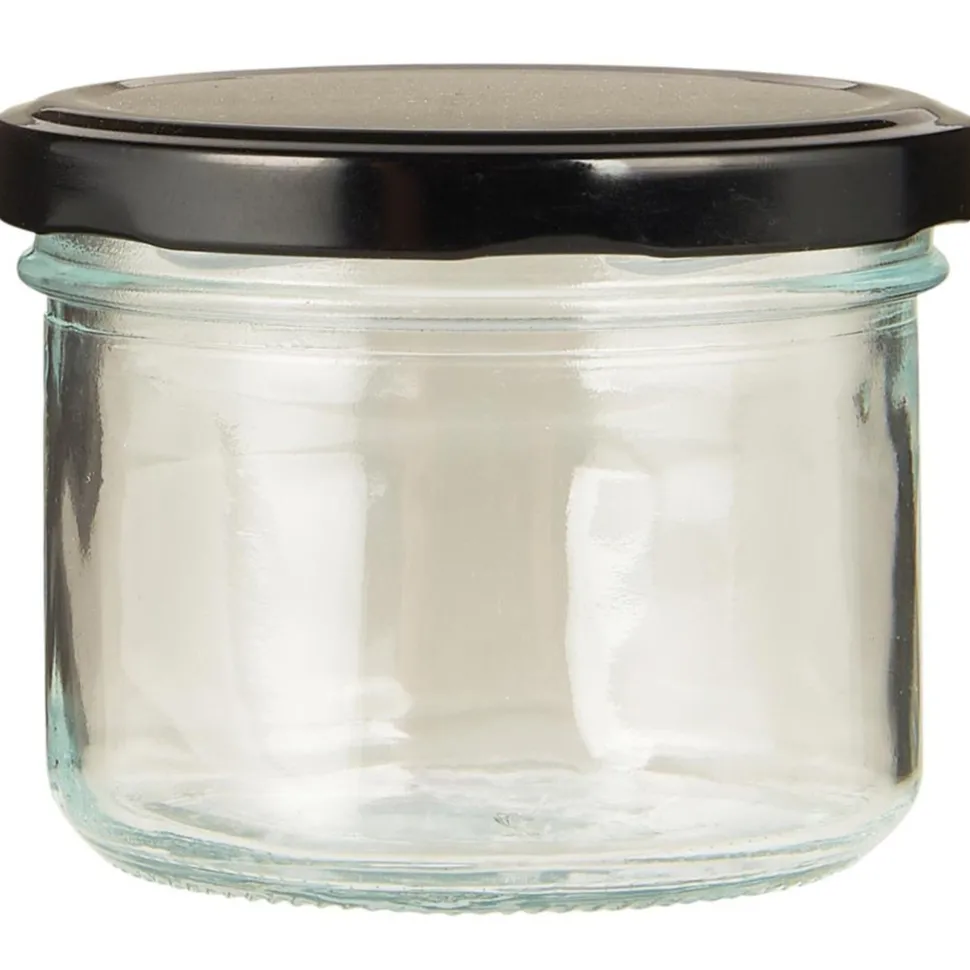 Geräumiges Glas mit schwarzem Metallschraubdeckel und einem Fassungsvermögen von 280 ml. Ideal zur Aufbewahrung größerer Portionen Marmelade, Flocken oder anderer trockener Zutaten. Eine praktische und stilvolle Lösung für die Küche.