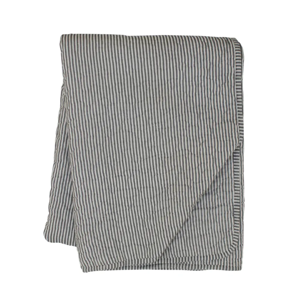 Krasilnikoff Quilt mit dünnen Streifen, Schwarz/Weiß