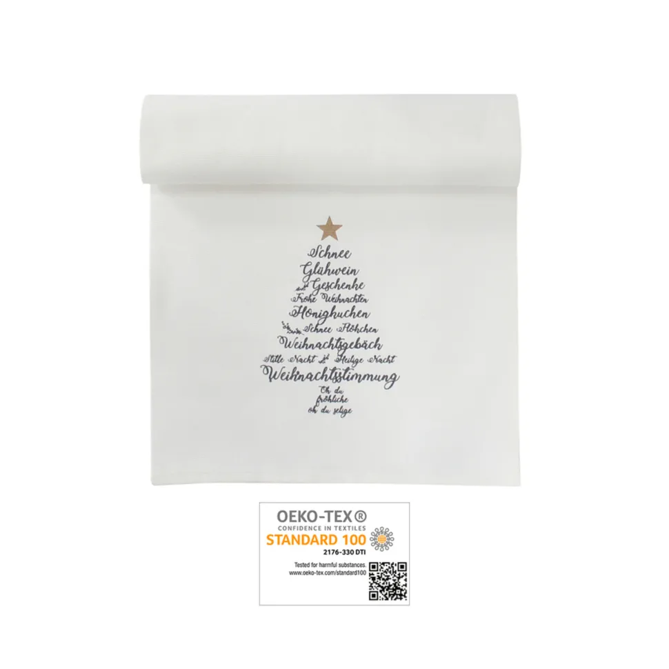 Krasilnikoff Tischläufer Christmas Words, Weiß