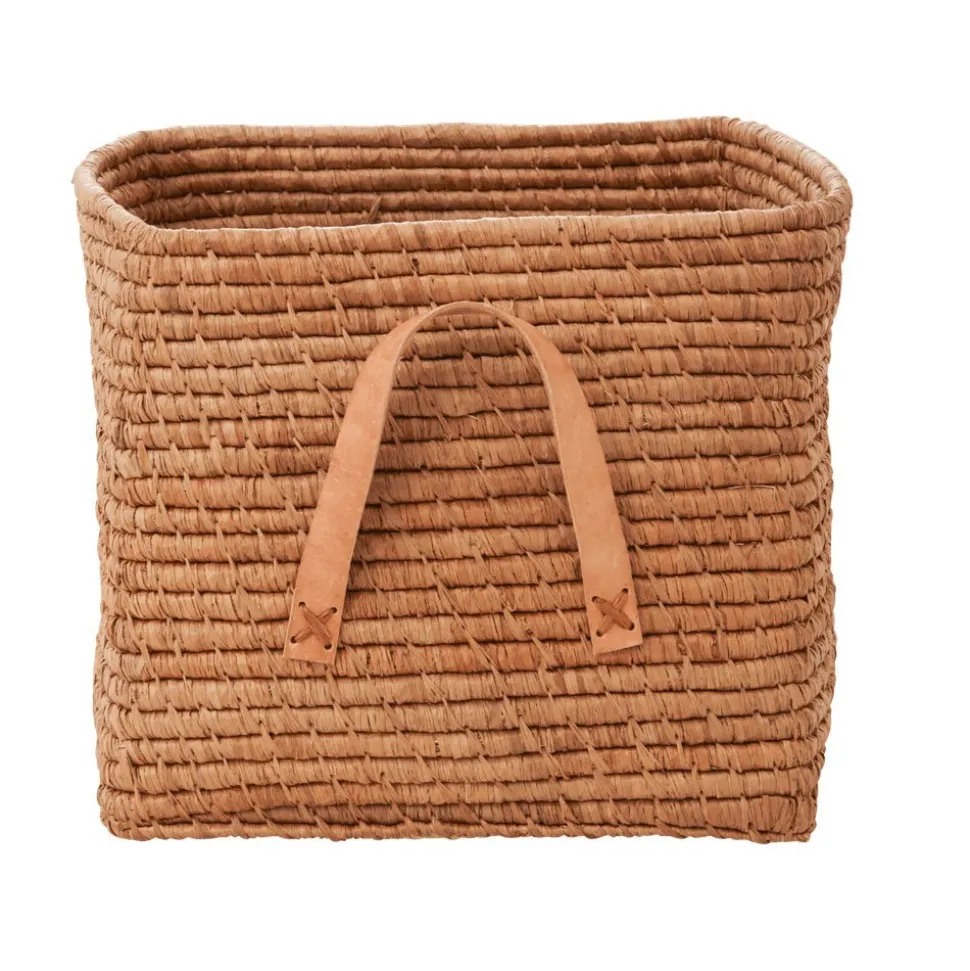 Schöner Aufbewahrungskorb Einfarbig mit Lederschlaufen von RICE in diversen Farben. Nutze den Korb für Bücher, Magazine, Spielzeug oder als Blumentopf*. So schaffst du ein wenig Ordnung in deinem Zuhause und bringst gleichzeitig einen Klecks Farbe in jeden Raum.