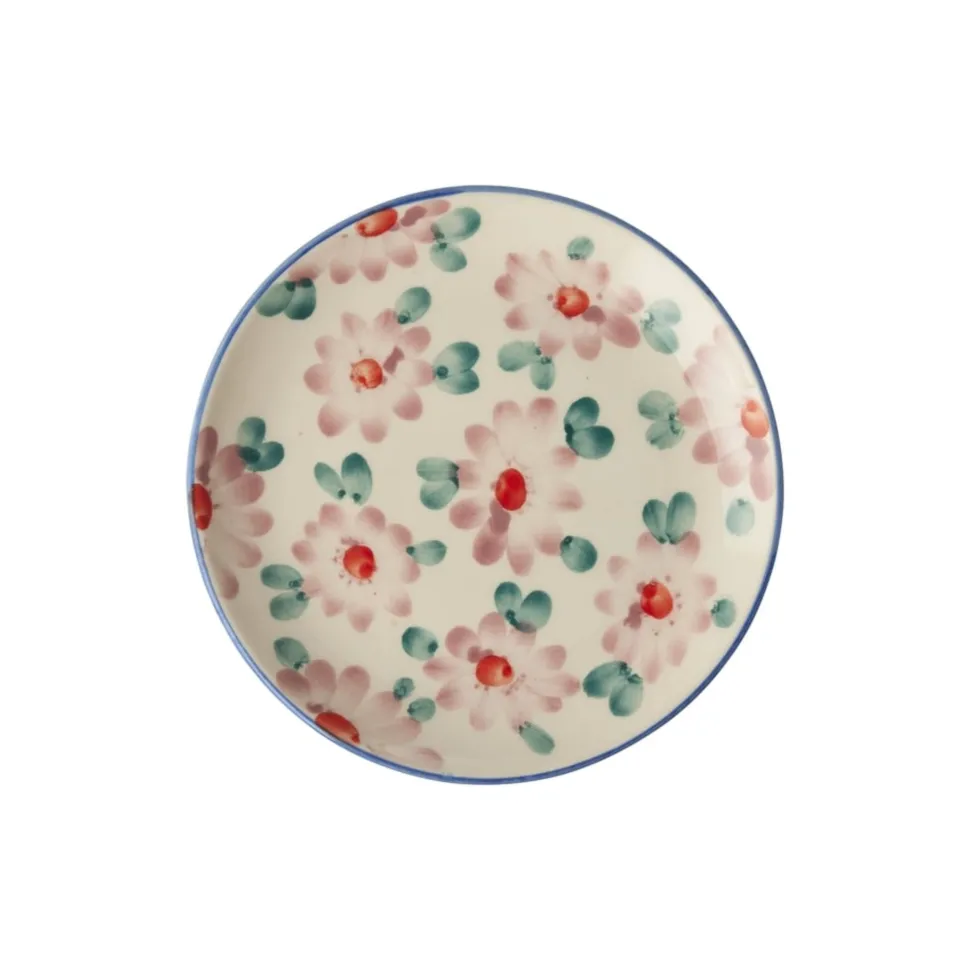 RICE Keramik Kuchenteller mit Handgemalten Blumen