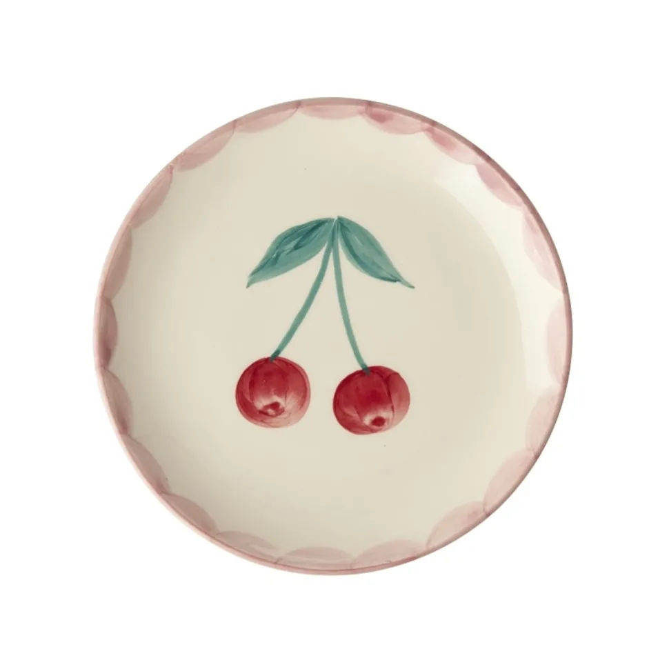RICE Keramik Kuchenteller mit Handgemalten Kirschen