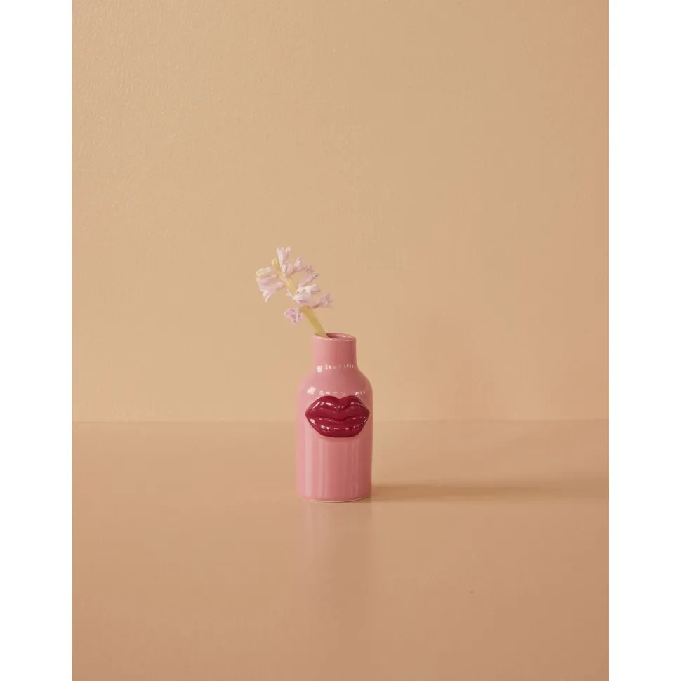 Unsere beliebte „Kissy-Kissy“-Vase in extra kleiner Größe und mit leuchtend rosa Lippen. Die ausgefallene Vase sticht aus der Menge hervor.