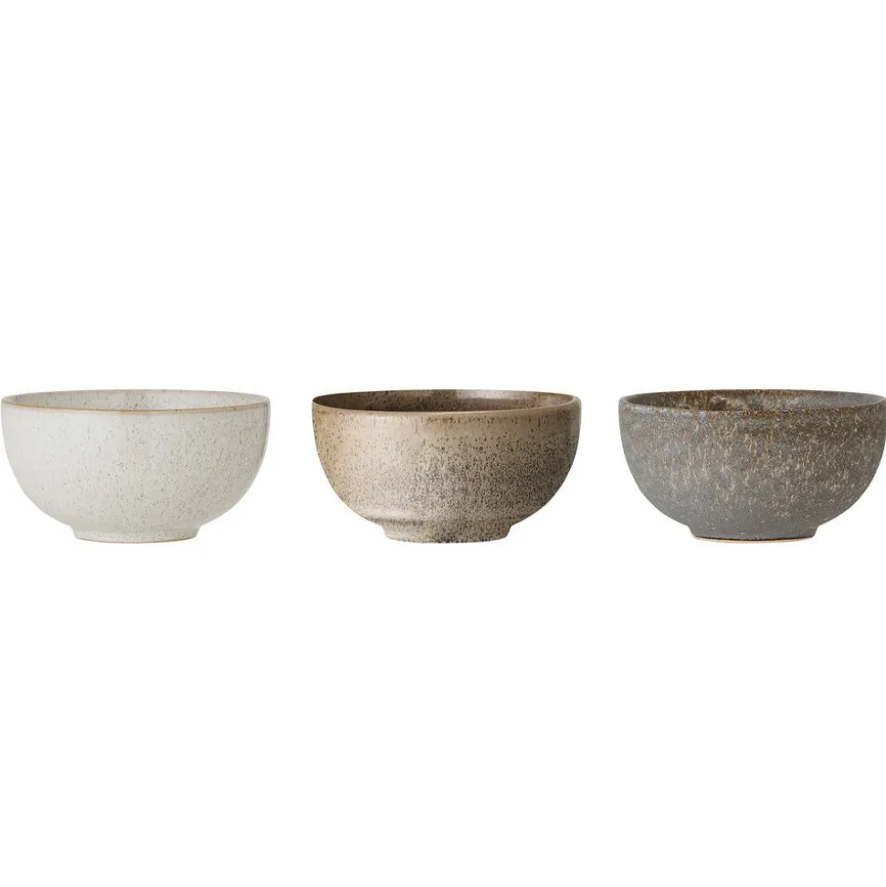 Das wunderschöne 3er Set Schüsseln Addison von Bloomingville bestehen aus Steingut und haben verschiedene Farbtöne – von Weiß, über Beige bis Braun. Die Schalen werden liebevoll handgefertigt. Die Schüsselgröße ist perfekt um Tapas, Nüsse oder Chips mit Stil zu servieren.