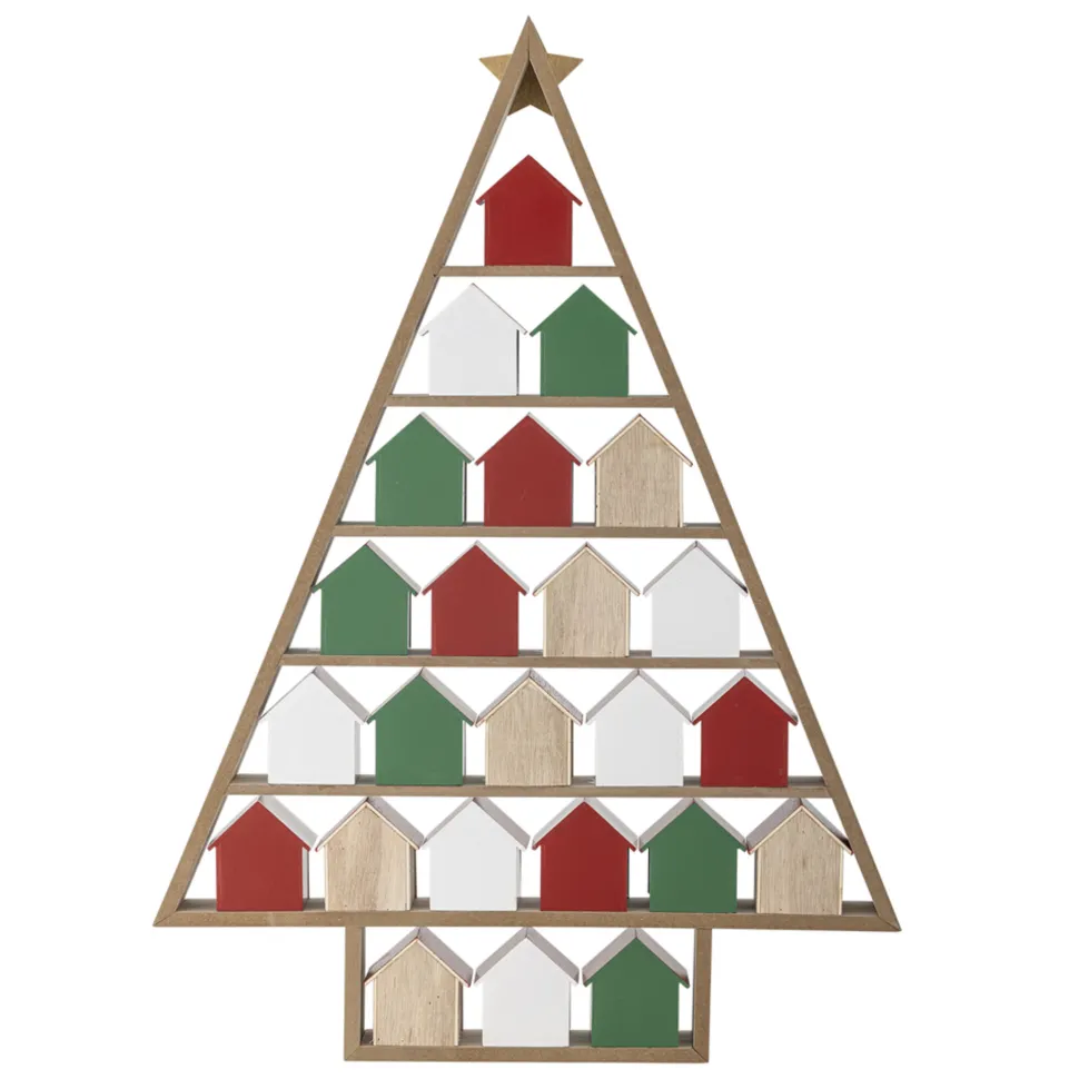 Calvin Kalender, Rot, MDF von Bloomingville aus Dänemark. Der Calvin Kalender von Bloomingville lädt zu einem gemütlichen Countdown bis Heiligabend ein. Dieser charmante Weihnachtsbaum-förmige Kalender ist aus Holz gefertigt und mit kleinen, bunten Häusern geschmückt, die die Tage im Dezember bis zum 24. darstellen. Mit der Möglichkeit, kleine Überraschungen in jedem Fach zu verstecken, kann er Teil Ihrer Weihnachtstraditionen werden und Freude sowohl bei Jung als auch bei Alt bringen.