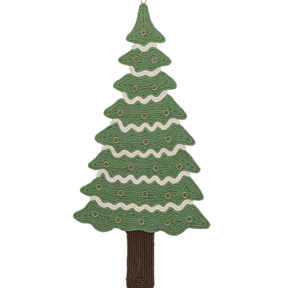 Douglas Adventskalender mit Ringen in Baumform, Grün, Baumwolle von Bloomingville aus Dänemark. Der Douglas Kalender von Bloomingville ist in Form eines Weihnachtsbaums gewebt und mit 24 Ringen in Goldoptik verziert. Nutzen Sie die Aufhängung auf der Rückseite, um ihn aufzuhängen und einen kreativen Countdown bis Weihnachten zu gestalten, indem Sie die 24 Ringe mit kleinen Geschenken dekorieren. Der Kalender kann auch flach liegend als Dekoration auf dem Weihnachtstisch oder als schöne Wanddekoration verwendet werden.