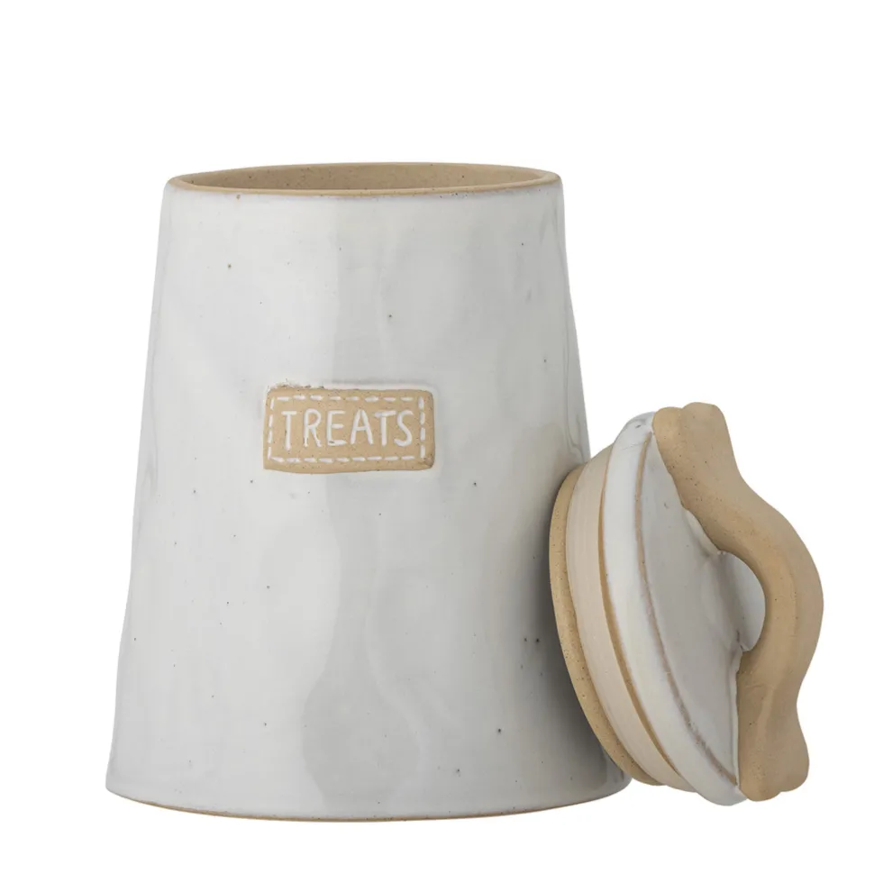 Bandit Leckerlidose mit Deckel aus Steingut von Bloomingville aus Dänemark. Die Gefäß mit Deckel Bandit von Bloomingville für die lieben Haustiere ist aus Steinzeug in einem weißen Farbton gefertigt. Die Dose hat einen Silikondeckel für eine längere Haltbarkeit. Perfekt, um Futter oder Leckerlis auf schöne Weise aufzubewahren. Aufgrund der Natur der Glasur sowie der handgefertigten Technik können Farbvariationen vorkommen.