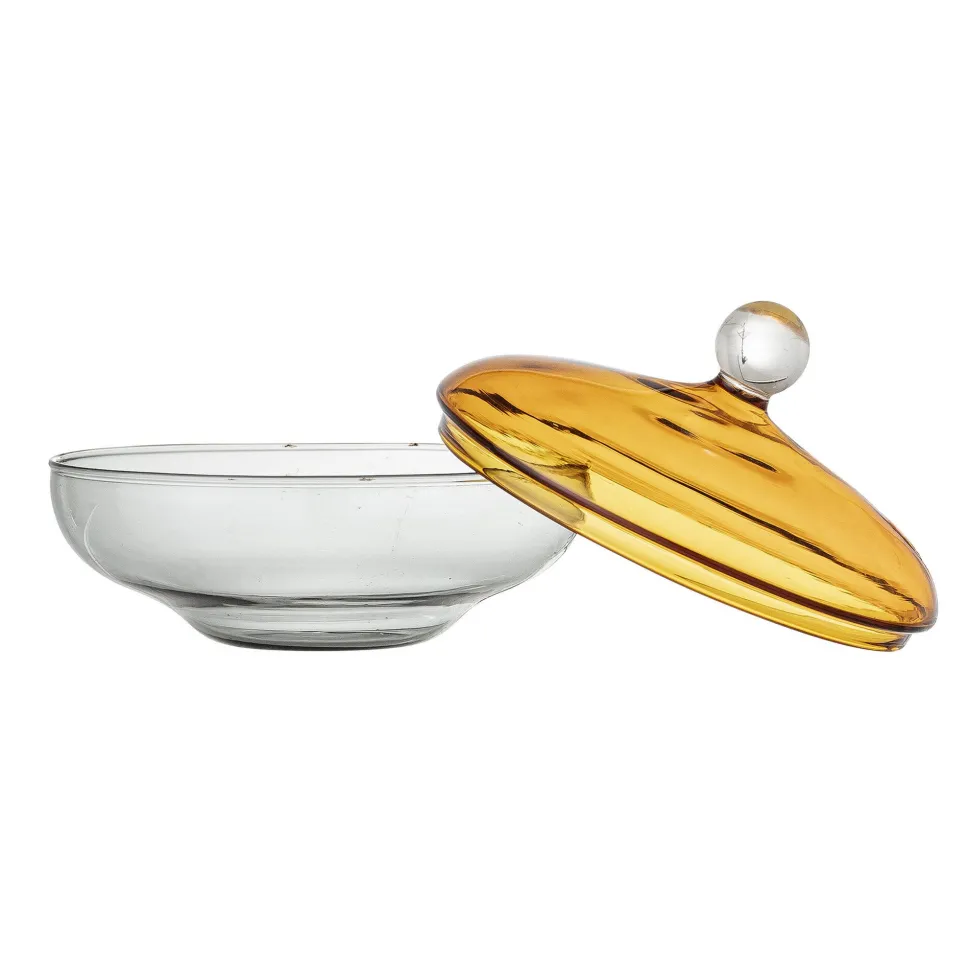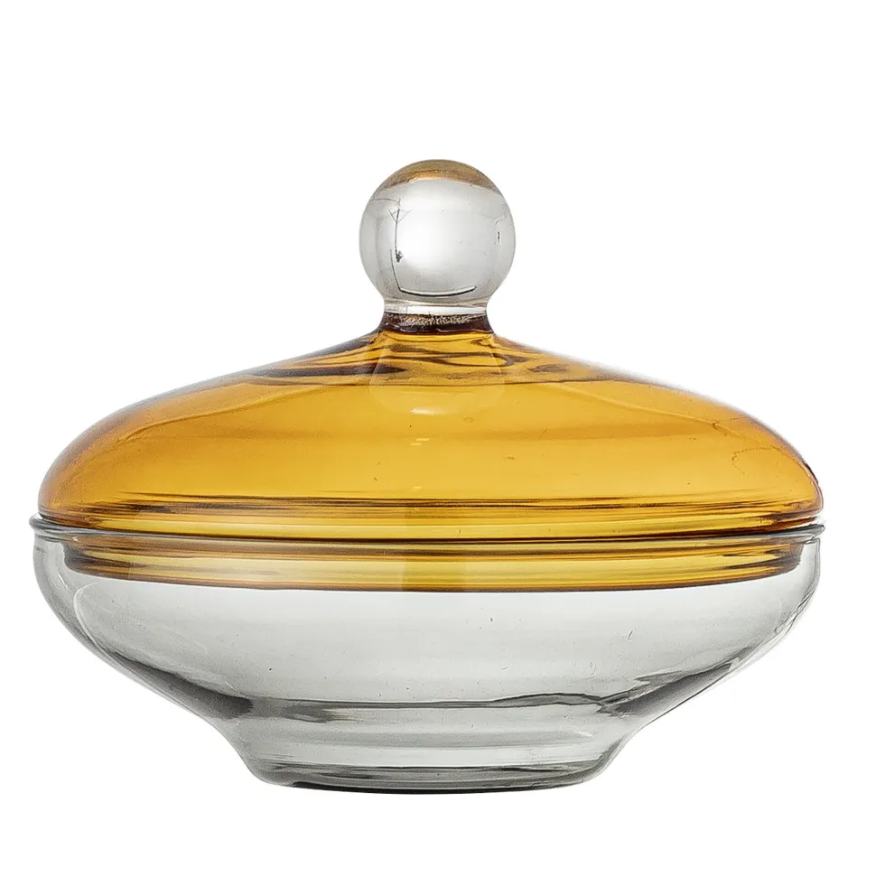 Dieser schöner Behälter Danni aus Glas von Bloomingville Cozy bringt ein warmes Glänzen in dein Zuhause. In der Küche kannst du ihn zur Aufbewahrung von Zutaten nutzen und im Rest des Hauses ist er ein tolles Dekoelement, das für sich oder befüllt mit Zapfen, Perlen oder Figuren wunderschön aussieht.