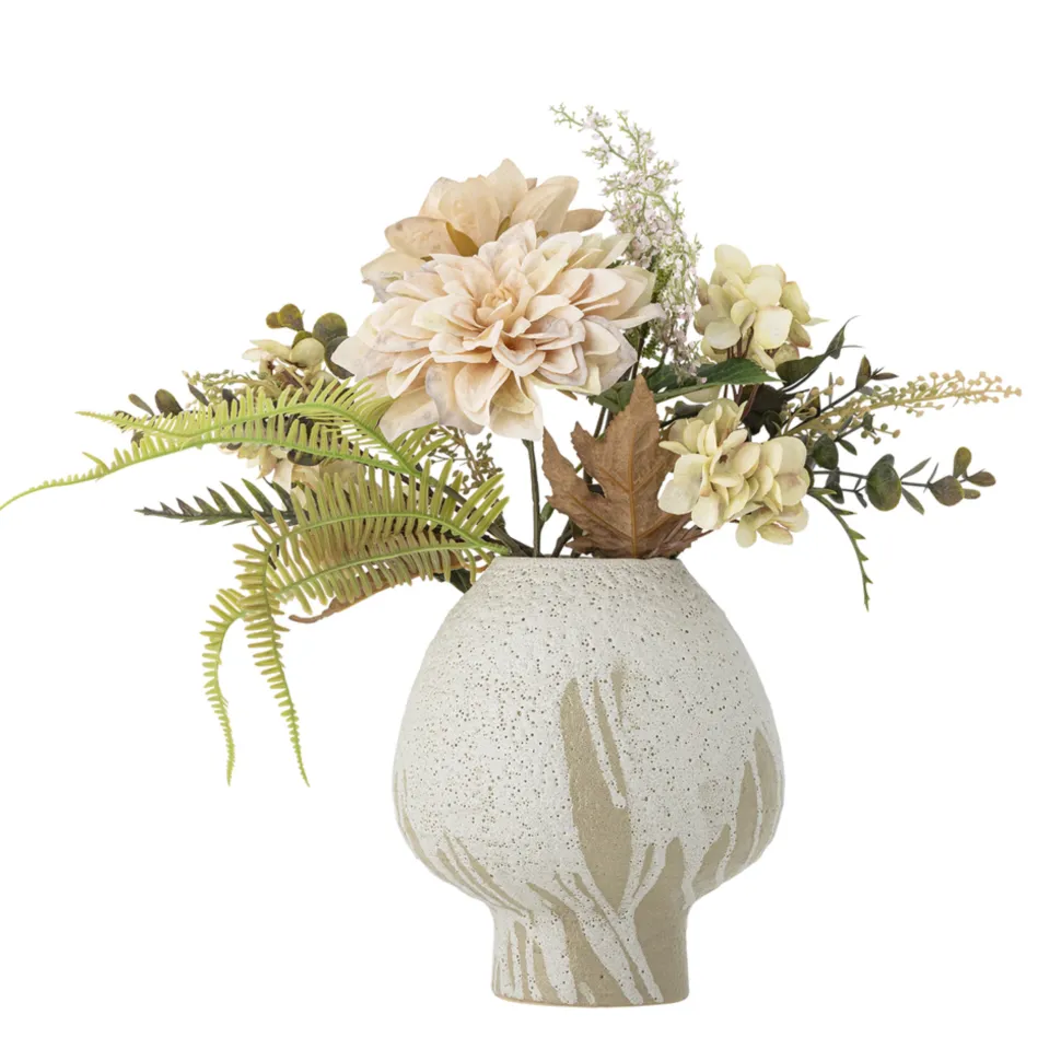 Blumenstrauß Glow, Künstlicher Blumenstrauß von Bloomingville aus Dänemark. Der Glow Bouquet von Bloomingville ist ein schöner künstlicher Strauß, der perfekt in kleinere Vasen passt. In der Mitte des Straußes steht eine große Chrysantheme in natürlichen Farben, umgeben von einer harmonischen Mischung aus Blumen und Blättern. Die Stiele können je nach Bedarf abgeschnitten und geformt werden. Vermeiden Sie Wasser, da der Metalldraht Rost und Flecken verursachen kann.