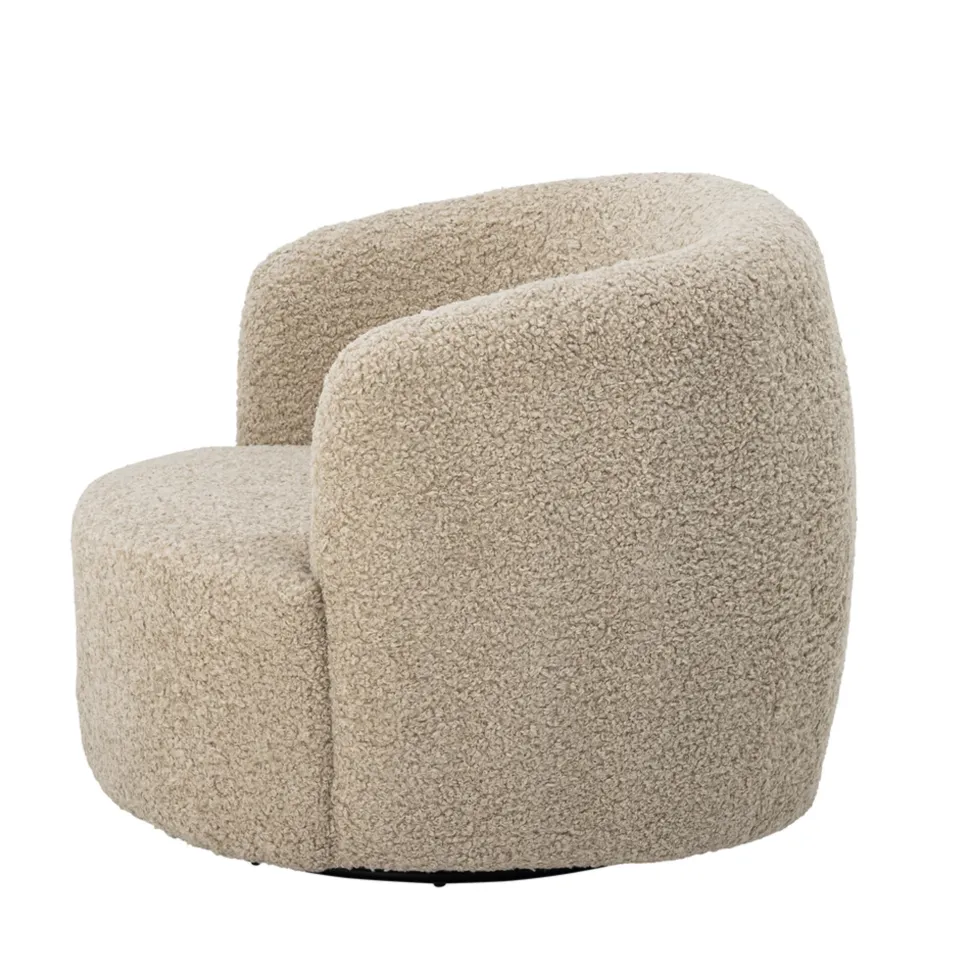 Bocca Loungesessel von Bloomingville aus Dänemark. Der Bocca Loungesessel von Bloomingville erscheint in einer organischen Form. Seine Drehfunktion bringt eine praktische Dimension in das Möbelstück, was ihn perfekt für ein Wohnzimmer macht, in dem Flexibilität das Stichwort ist. Der weiche, texturierte Polyesterbezug verleiht einen modernen Look, während die gedämpfte Farbe den Loungesessel ideal für verschiedene Einrichtungsstile macht.