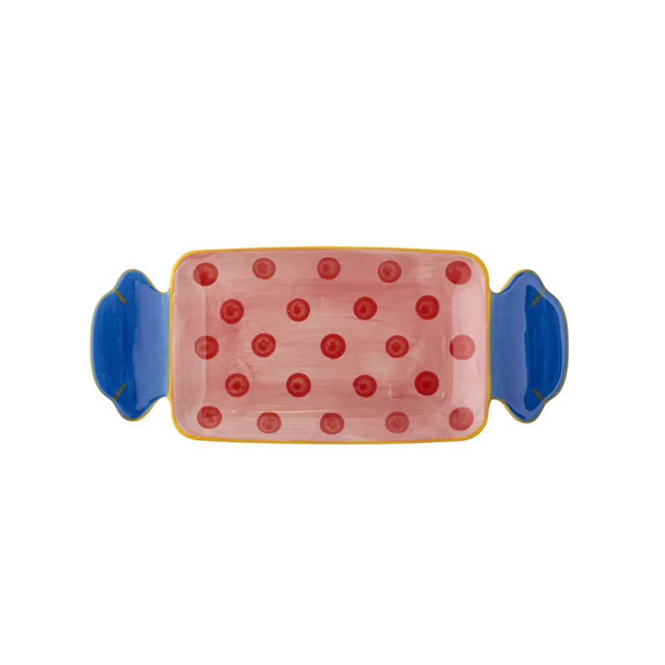 Caramella Servierplatte Rose aus Steingut von Bloomingville aus Dänemark. Die Caramella Servierplatte von Bloomingville, geformt wie ein Karamell, ist mit handbemalten Details verziert, die jede Platte einzigartig machen. Ihre lebendigen Farben und das auffällige Design schaffen eine verspielte und farbenfrohe Atmosphäre bei alltäglichen Mahlzeiten und festlichen Zusammenkünften.