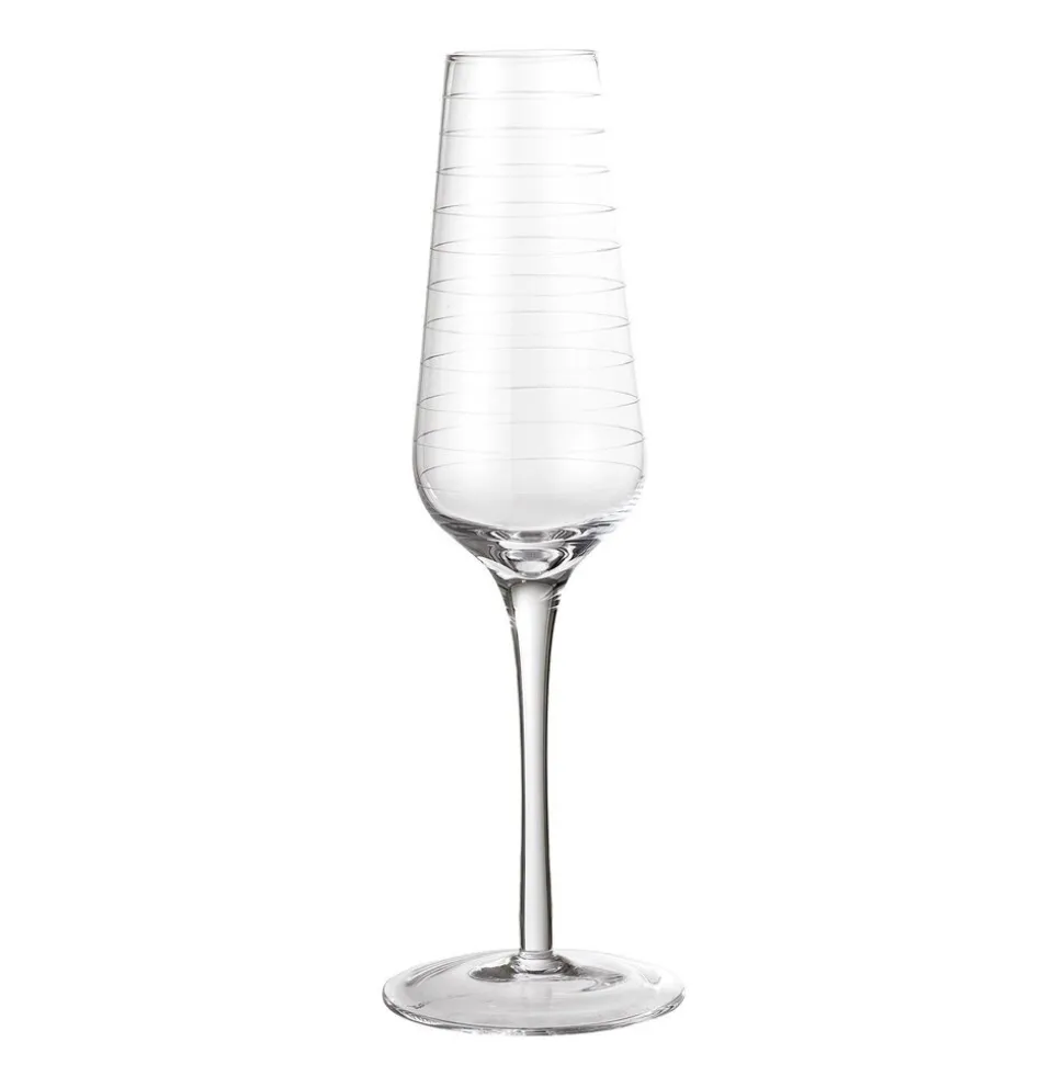 Dieses zauberhafte Champagner Glas Alva von Bloomingville beeindruckt auf jeder Dinner Party. Die Flöte ist mit einer eleganten Ring Gravur versehen, die es zu einer echten Besonderheit machen. Stelle es zu deinem schönsten Geschirr auf den Esstisch und erfreue dich an dem brillanten Glänzen.