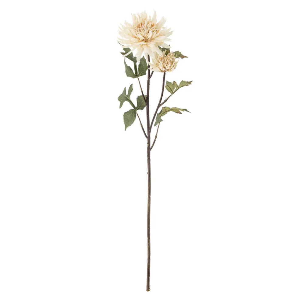 Chrysantemum Stiel, Natur, Künstliche Blumen von Bloomingville aus Dänemark. Chrysanthemum Künstlich Einzelstiel von Bloomingville zeichnet sich durch wunderschöne Blütenköpfe in cremigem Weiß und detailliert grünen Blättern aus, die ein Gefühl von Frische und Lebendigkeit vermitteln. Diese künstliche Blume kann allein oder in Kombination mit anderen künstlichen Blumen in einem Strauß verwendet werden, wobei sie ohne Pflege schön bleibt. Formen Sie den Stiel vor der Verwendung, um das natürliche Aussehen der Pflanze zu betonen und ihn an Ihre persönliche Dekoration anzupassen.