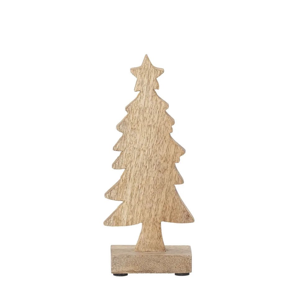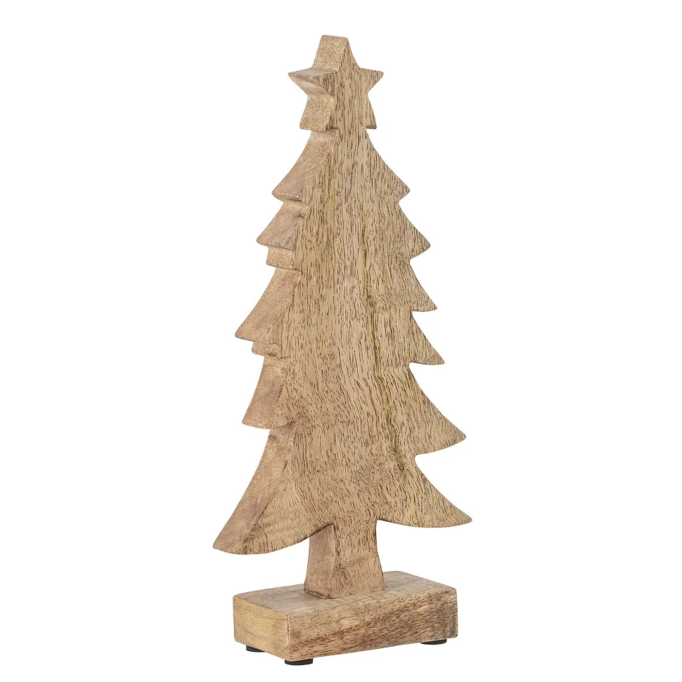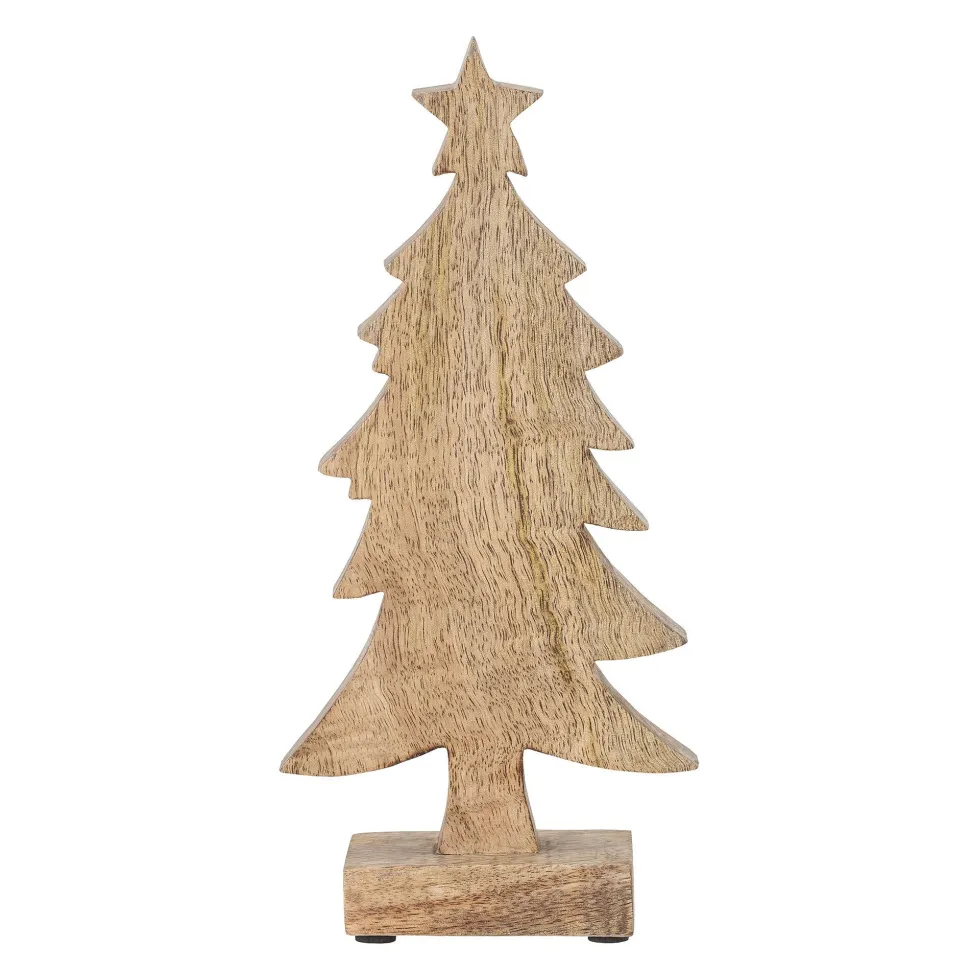 Der Dekobaum besteht aus Mangoholz und hat ein natürliches und schlichtes Design. Der Baum passt wunderbar auf Kommoden und Regale und lässt sich fabelhaft mit anderen weihnachtlichen Dekoartikeln kombinieren.