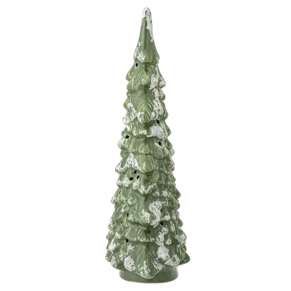 Flicka Deko Weihnachtsbaum mit Licht, Steingut von Bloomingville aus Dänemark. Die Flicka Deko von Bloomingville ist eine bezaubernde keramische Weihnachtsbaumdekoration. Diese in klassischem Grün gehaltene Dekoration ist mit kleinen Lichtern ausgestattet, die sofort eine warme und festliche Atmosphäre in jeden Raum bringen. Die handgefertigte Keramik zeigt Feinheiten im Design mit weißen Nuancen, die die Illusion von frischem Schnee erzeugen, während die sorgfältig platzierten kleinen leuchtenden Glühbirnen eine gemütliche Atmosphäre schaffen. Dieser keramische Weihnachtsbaum von Bloomingville verbindet Tradition und Raffinesse und wird zweifellos zu einem geschätzten Element Ihrer Weihnachtsdekoration.