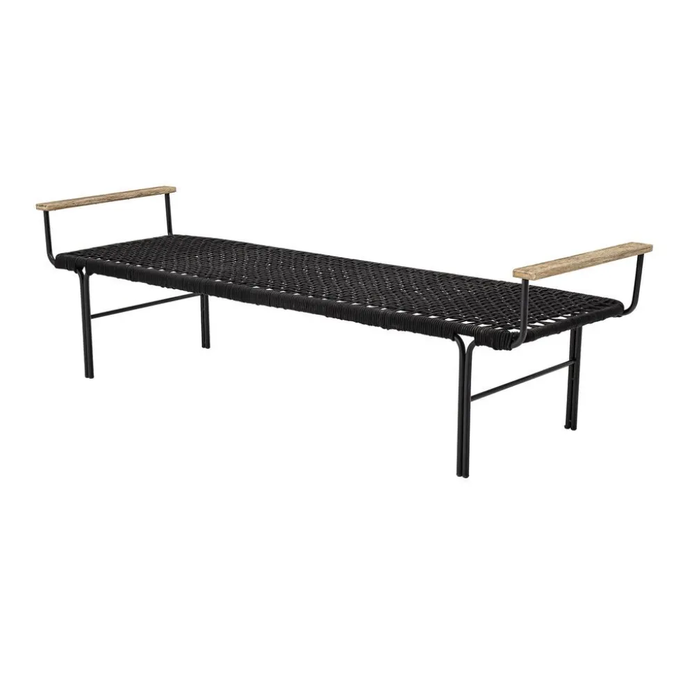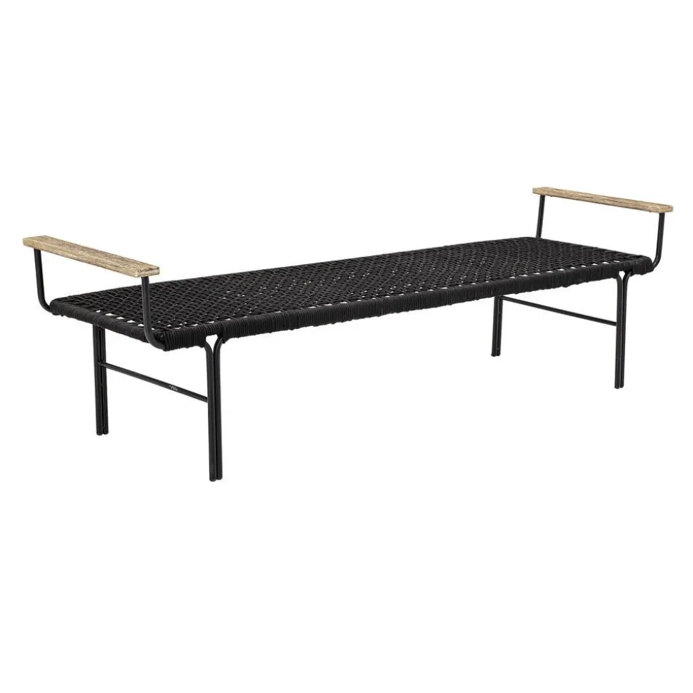 Diese elegante Bank Mundo von Bloomingville sorgt für Abwechslung auf jeder Terrasse. Die Bank besteht aus einem Metallgestell und ist fest mit einem Seil in Flecht Optik umwickelt.