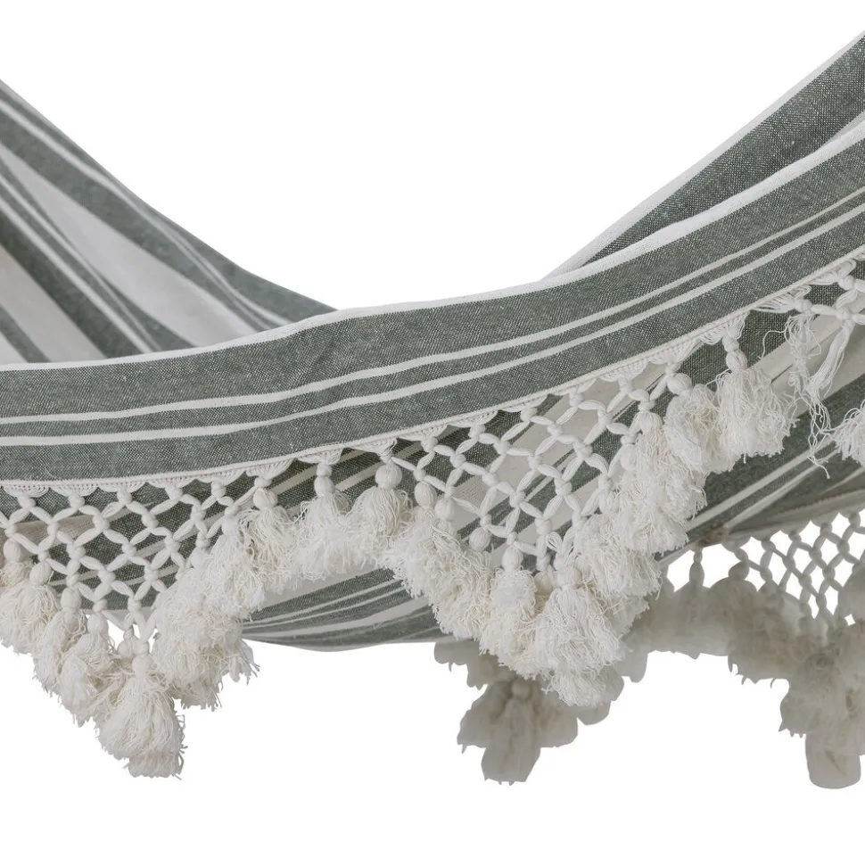 Cruz Hängematte, Grün, Baumwolle von Bloomingville aus Dänemark. Die Hängematte Cruz von Bloomingville ist ein gemütliches Detail im Garten und perfekt für heiße Sommertage. Die Hängematte ist aus Baumwolle in einem grünen Farbton gefertigt und hat kleine hübsche Details an den Seiten.