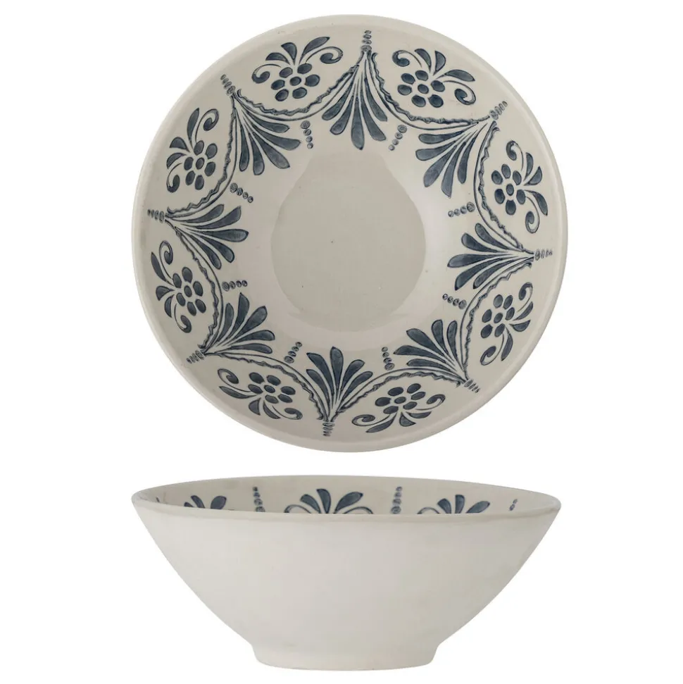 Die Heikki Schale 2000 ml. blau aus Steingut von Bloomingville aus Dänemark. Wunderschöne, handgemalte Muster in warmen Farben sind das Merkmal der Schale Heikki von Bloomingville. Die Schale ist aus Steinzeug gefertigt und eignet sich perfekt, um eine breite Vielfalt an Gerichten auf dem Esstisch zu servieren. Die handgemalte Schale Heikki ist einzigartig und variiert, da jeder Pinselstrich einen persönlichen Ausdruck hinterlässt. Die Schale lässt sich ausgezeichnet mit anderen Heikki Schalen kombinieren, um einen modernen Look mit gemütlicher Stimmung zu erzeugen.