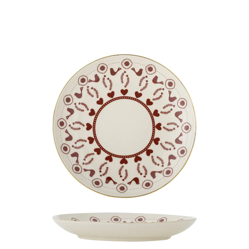 Jolly Teller, Rot, Steingut von Bloomingville aus Dänemark. Der Jolly Teller von Bloomingville ist ein eleganter Dessertteller mit einem gedruckten Weihnachtsmotiv. Der handbemalte goldene Rand verleiht der Tischdekoration eine charmante Note und stellt sicher, dass jeder Teller einzigartig ist. Perfekt für alltägliche sowie festliche Anlässe, schafft der Teller eine warme und einladende Atmosphäre.