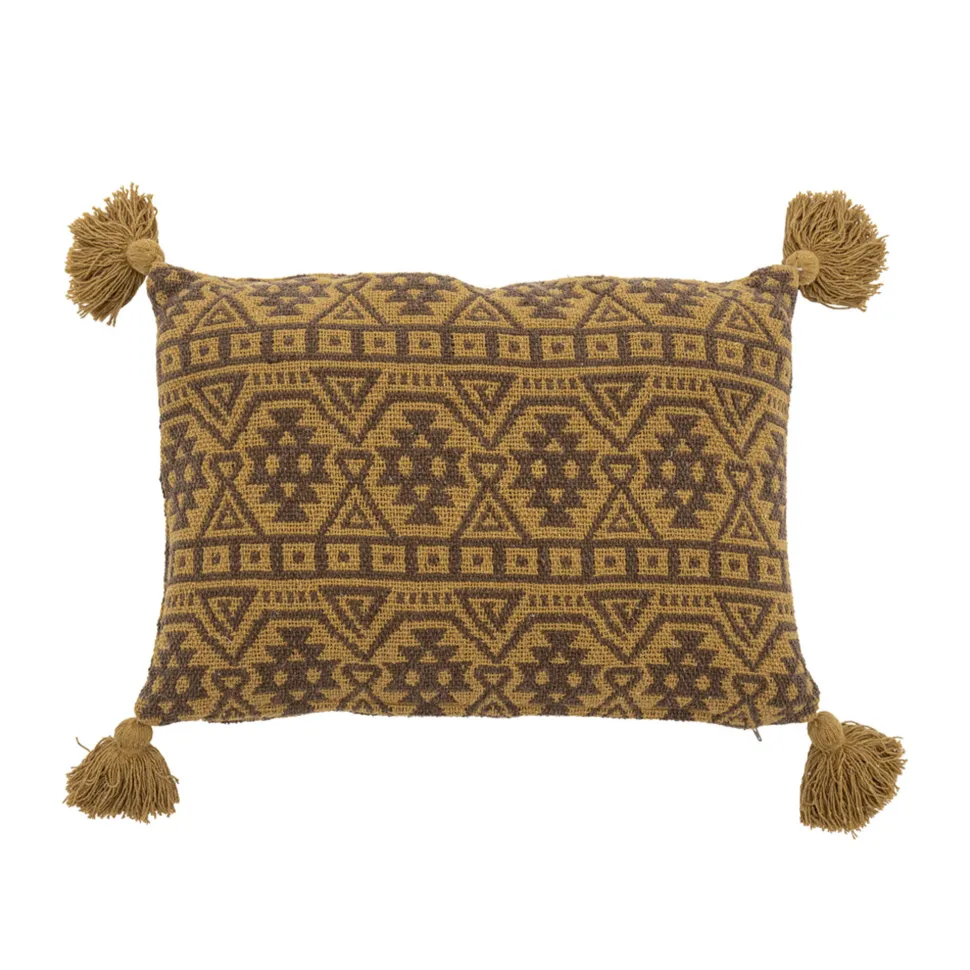 Lyla Kissen, Braun, Recycelte Baumwolle von Bloomingville aus Dänemark. Das Lyla Kissen von Creative Collection ist aus recycelter Baumwolle in einem warmen Gelbton mit einem schönen braunen Muster gefertigt. Das Kissen wird jede Sitz- oder Sofadekoration aufpeppen und Wärme verleihen.