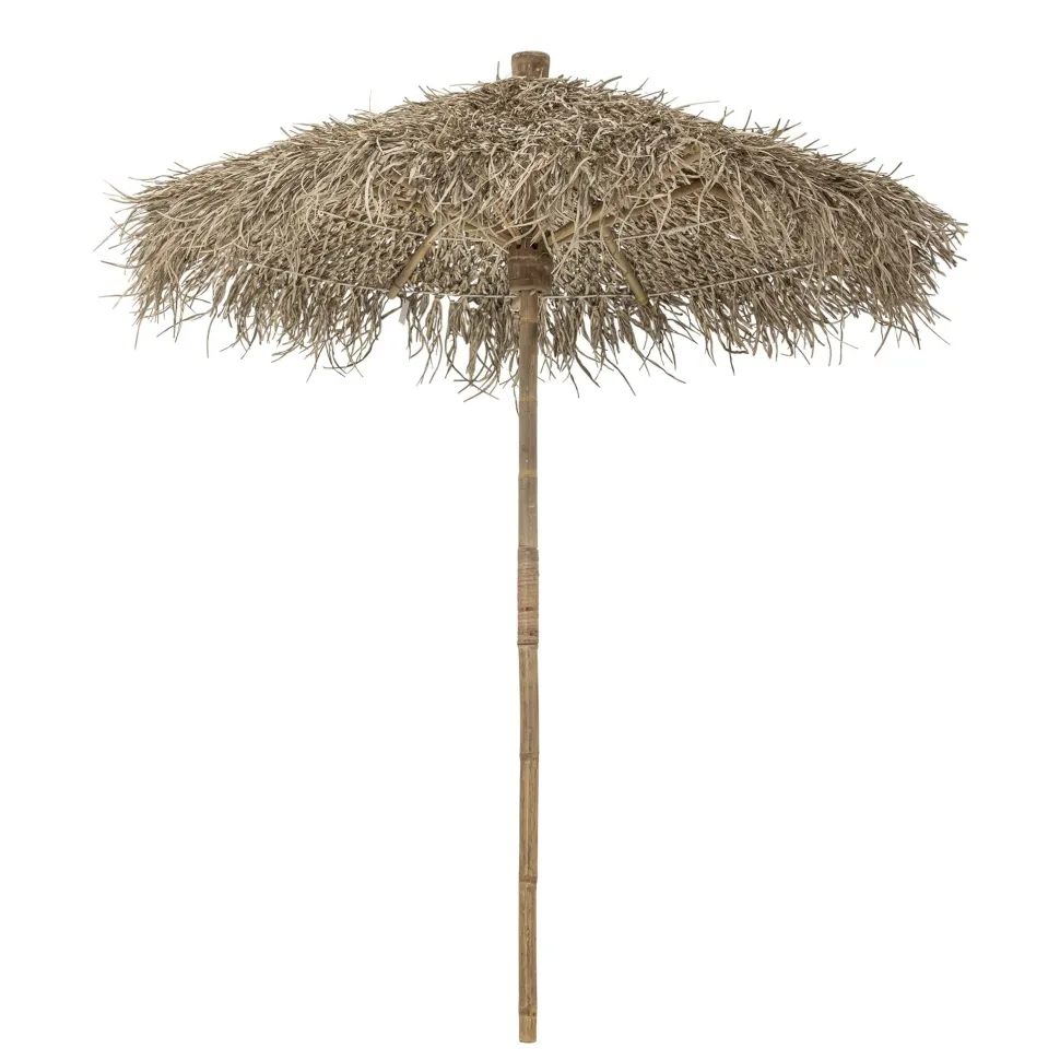 Der Noia Sonnenschirm von Bloomingville ist aus Bambus mit einem Dach aus Palmblättern gefertigt, was eine gemütliche Atmosphäre in Ihrem Außenbereich schafft. Der Sonnenschirm spendet angenehmen Schatten an sonnigen Tagen, ermöglicht es Ihnen, sich zu entspannen und ein kühles Getränk zu genießen, und dient gleichzeitig als stilvolles Element in Ihren Außenbereichen. Es wird empfohlen, den Sonnenschirm in einem überdachten Bereich aufzubewahren, wenn er nicht in Gebrauch ist.