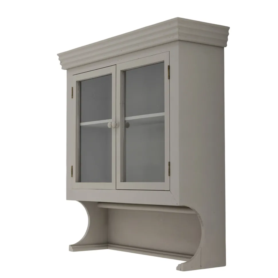 Pilu Kabinett, Grau, Tannenholz von Bloomingville aus Dänemark. Das Pilu Kabinett von Bloomingville ist ein stilvolles Wandschrank, das Ausstellung und Aufbewahrung kombiniert. Der Schrank hat einen leicht patinierten Look, der dem Küchen- oder Wohnzimmer Charakter und Charme verleiht. Der untere Teil ist mit einer praktischen Stange ausgestattet, ideal zum Aufhängen von Haken oder Geschirrtüchern. Die eleganten Glastüren ermöglichen es, Ihre Lieblingsgegenstände zur Schau zu stellen und in Ihre Einrichtung zu integrieren.