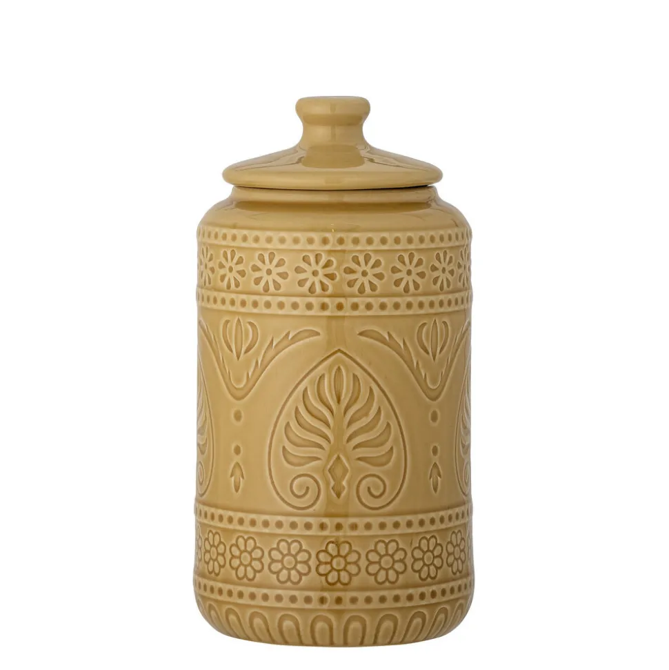 Rani Gefäß mit Deckel, Gelb, Steingut von Bloomingville aus Dänemark. Der Rani Tiegel mit Deckel von Bloomingville ist eine Erweiterung der schönen Rani-Serie. Er hat eine schöne gelbe Farbe, die allen Tischen eine freudige Note verleihen wird. Der Tiegel ist eine perfekte Ergänzung für Ihre Küche, wenn Sie etwas suchen, das nicht nur funktional ist, sondern auch gut aussieht. Aufgrund der Beschaffenheit der Glasur können Farbvariationen auftreten.