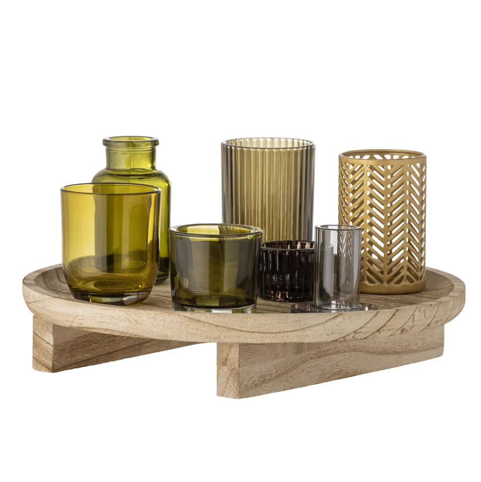Bloomingville Rundes Sanga Tablett mit Teelichthaltern