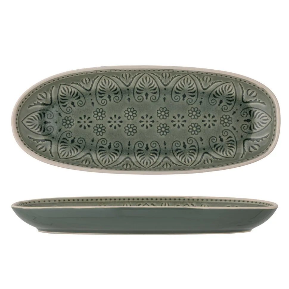 Rani Servierplatte, Grün, Steingut von Bloomingville aus Dänemark. Der Servierteller Rani von Bloomingville ist einzigartig und offenbart das Gefühl von Wohnlichkeit durch eine intensive und warme Farbpalette. Der Teller ist aus Steinzeug in Grün gefertigt, und aufgrund der Natur der Glasur können Farbabweichungen vorkommen. Der Teller ist eine perfekte Ergänzung für Ihren Tisch, wenn Sie nach etwas suchen, das nicht nur funktionell, sondern auch schön ist. Spülmaschinenfest.