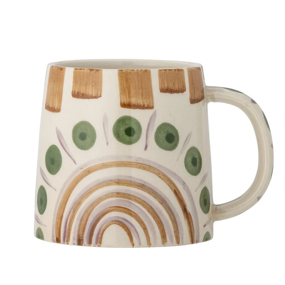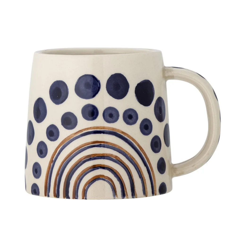 Die Shama Tassen aus Steingut von Bloomingville aus Dänemark. Die Tasse ist die perfekte Ergänzung zu Ihrer Sammlung von Bechern und Tassen. Mit seinem handbemalten Muster in schönen Schattierungen von Orange und Dunkelblau schafft es einen künstlerischen und gemütlichen Ausdruck, der Ihrem Kaffee- oder Tee-Moment extra Charme verleiht. Kombinieren Sie den Shama Becher mit verschiedenen Mustern oder einfarbigen Bechern, um einen persönlichen Stil zu kreieren. Jeder Becher ist einzigartig, da jeder Pinselstrich eine persönliche Note hinzufügt und Variationen im Design schafft.