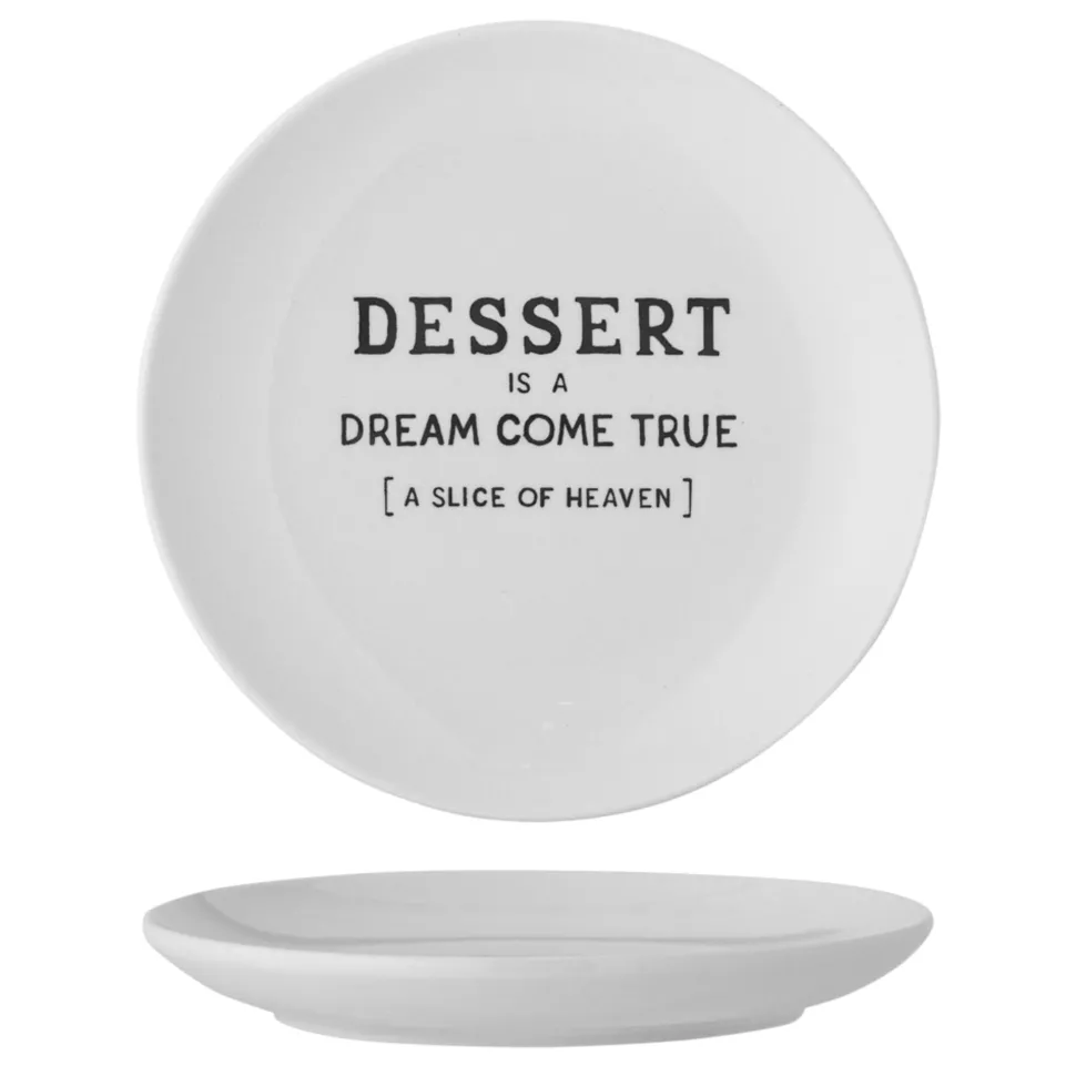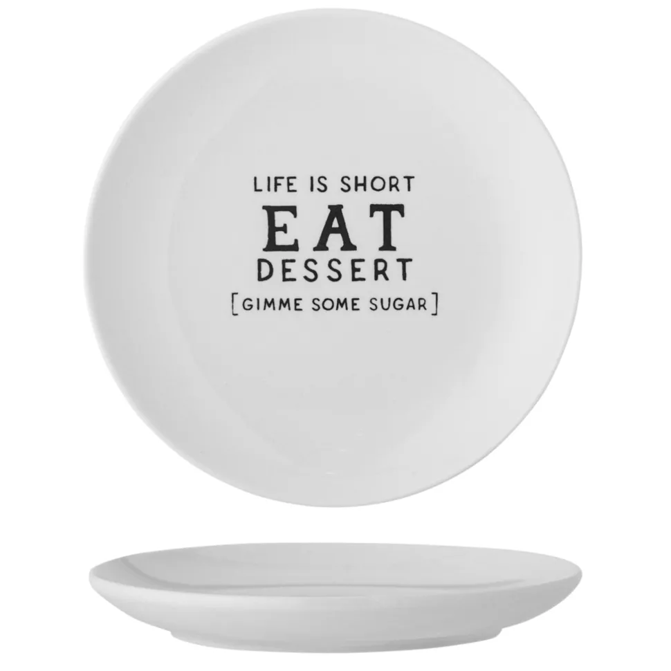 Telly Wendy mit Schrift, Steingut von Bloomingville aus Dänemark. Wendy Teller von Creative Collection ist ein süßer und gemütlicher Dessertteller – bedruckt mit verschiedenen Zitaten. Der Kuchenteller ist aus Steingut mit einer weißen Glasur und schwarzem Druck. Ein lustiger und süßer Teller für jede Dessertanrichtung und Naschkatzen.