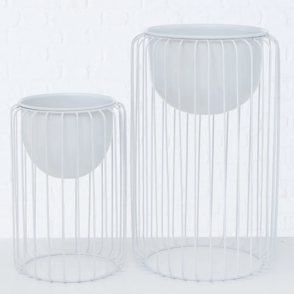 Die Blumentöpfe kommen im 2er Set und haben zwei unterschiedliche Höhen. Dadurch passen sie wunderbar nebeneinander auf Kommoden oder Regale. Die Blumentöpfe sind matt und bestehen aus Eisen.