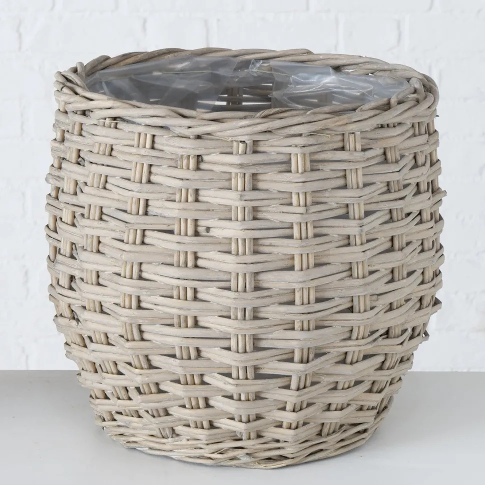 Die Körbe haben einen praktischen Plastikeinsatz und sind dadurch wasserdicht. Zudem sind die Körbe handgewebt und haben eine moderne, runde Form.